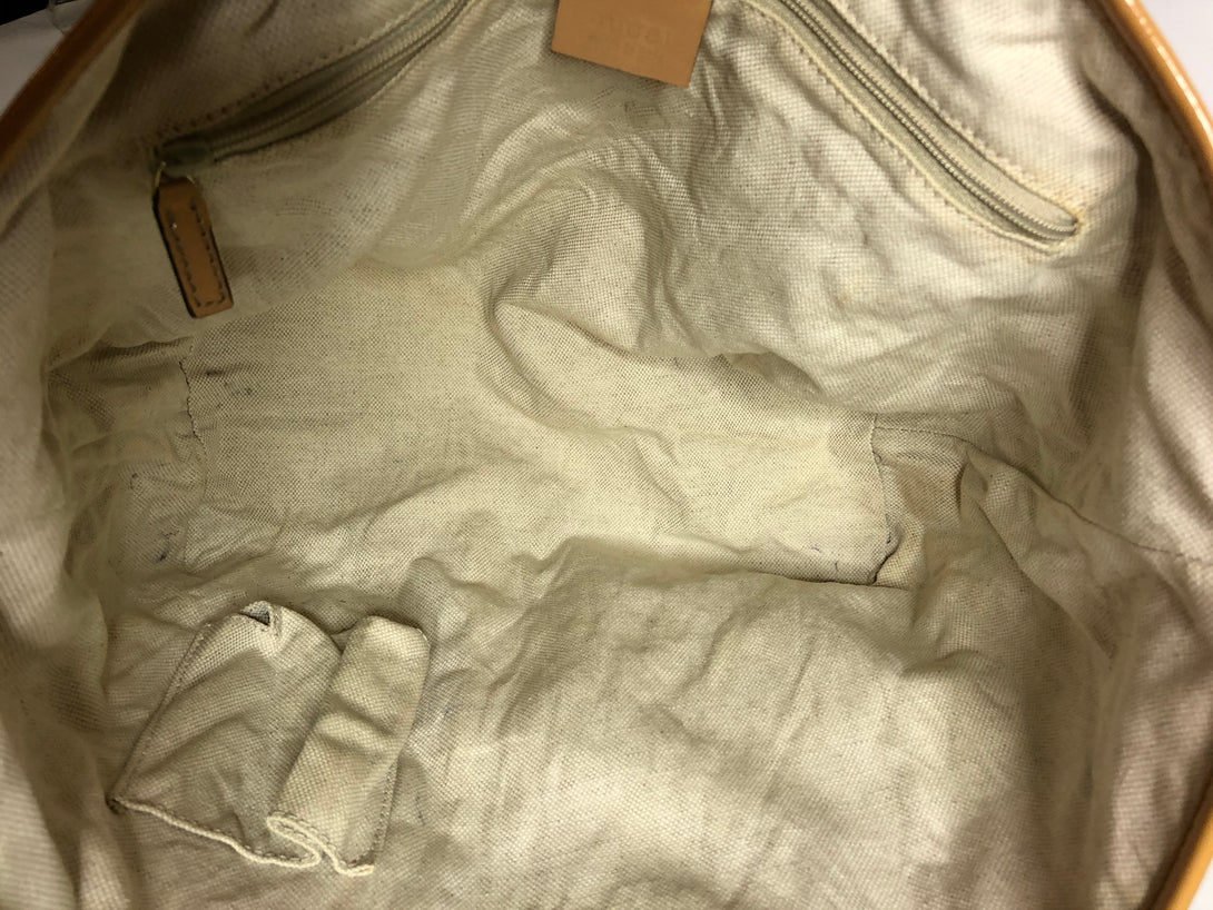 Good: Items show more prominent wear such as noticeable discoloration, stains and snags to fabric. May have worn corners and handles, tarnishing to hardware and creasing to leather. Pen or make up marks may be visible in the interior of the bag.