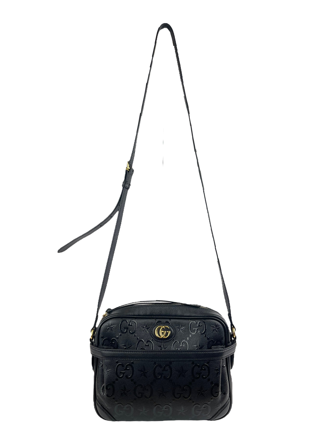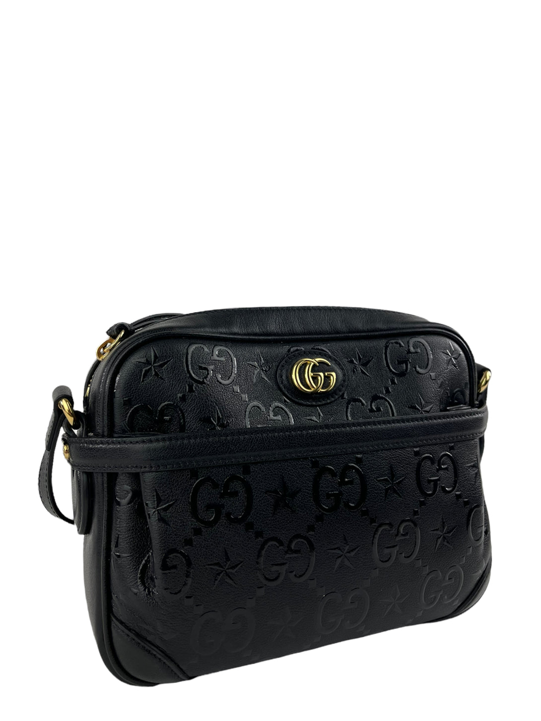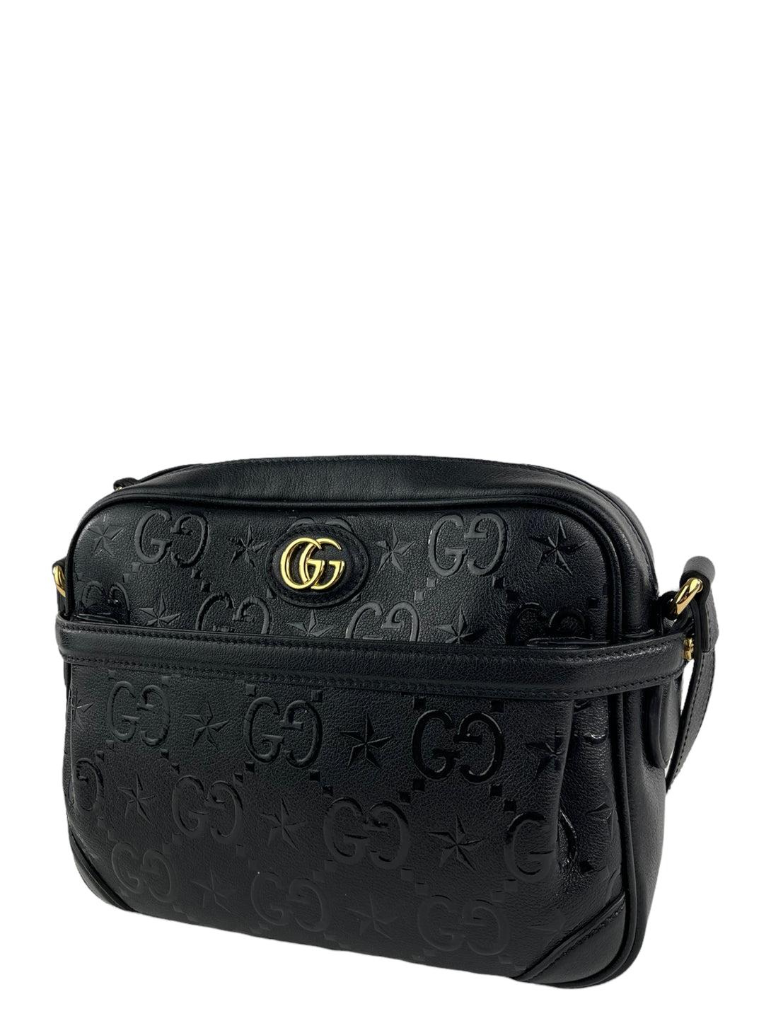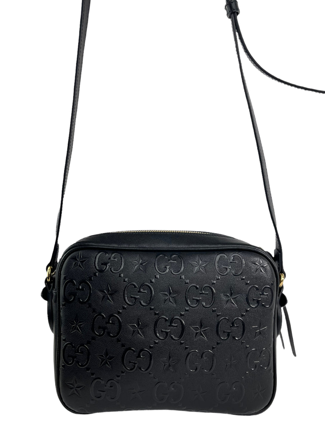 Gucci GG & Star Embossed Print Black Leather Crossbody