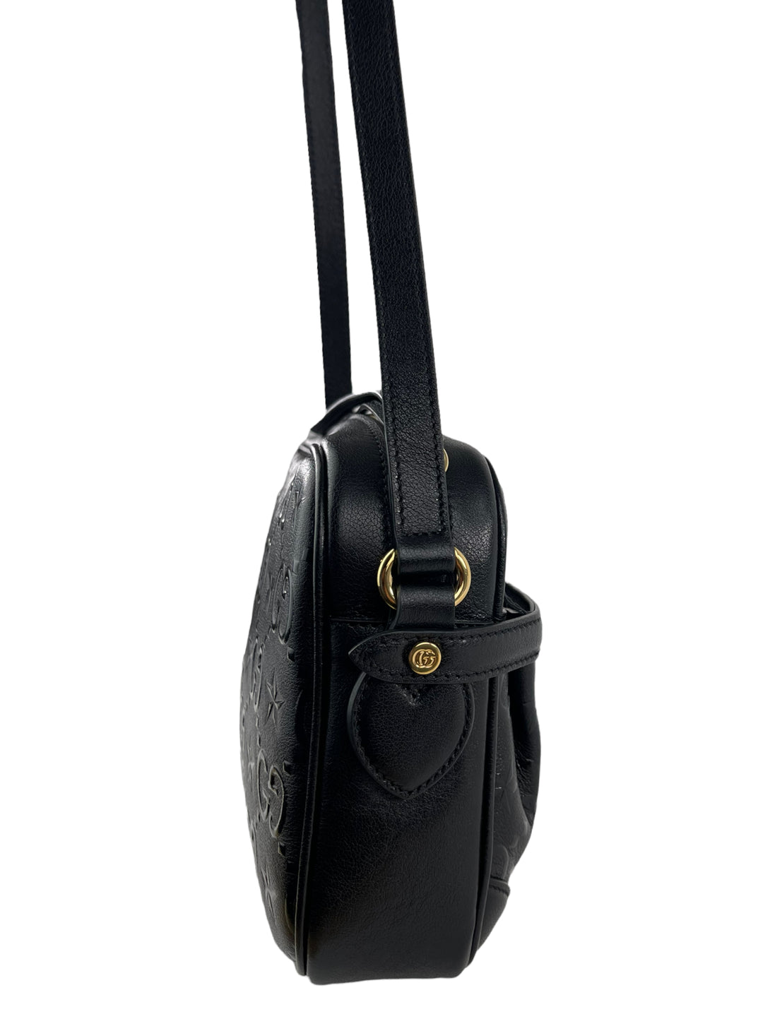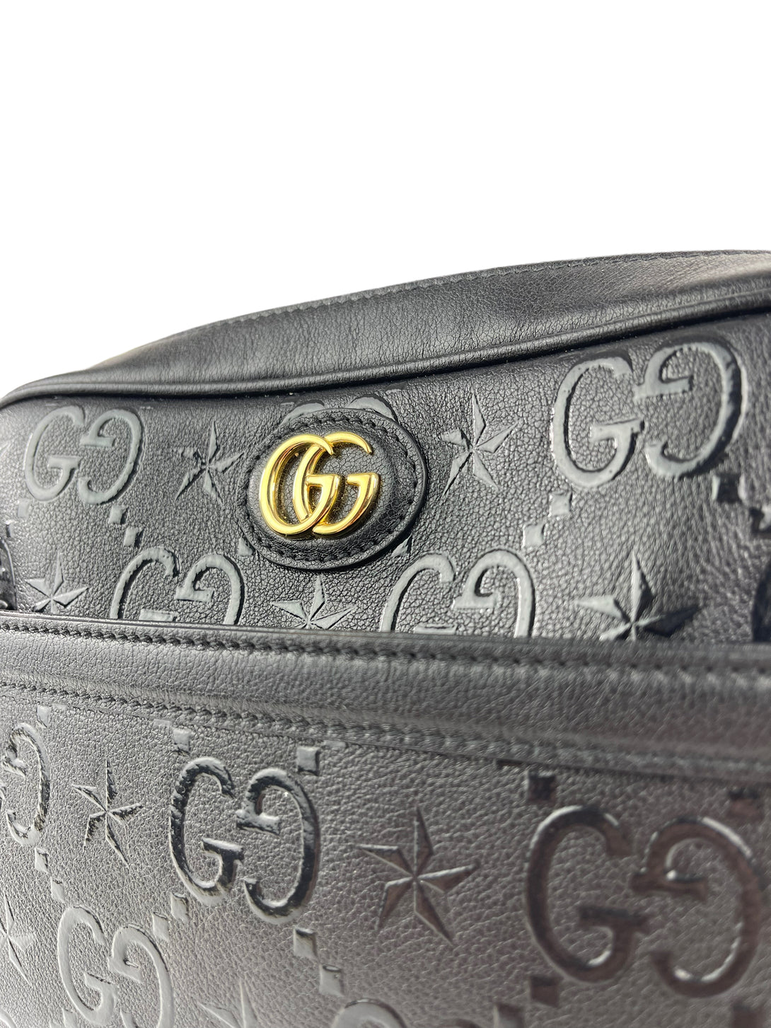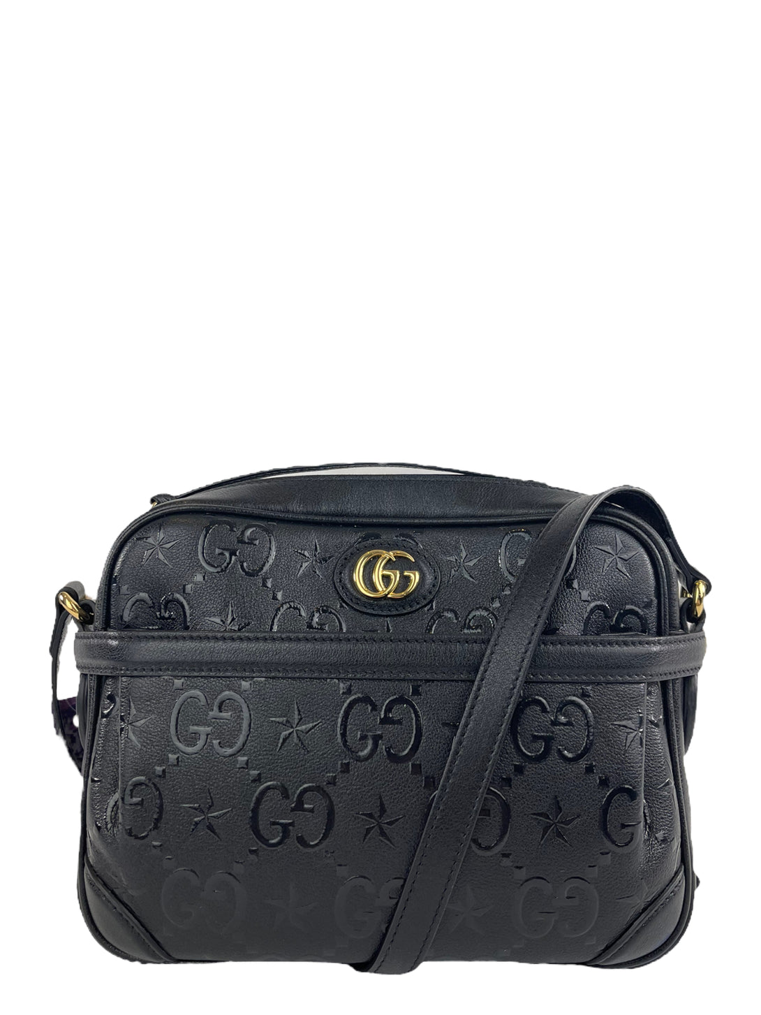 Gucci GG & Star Embossed Print Black Leather Crossbody