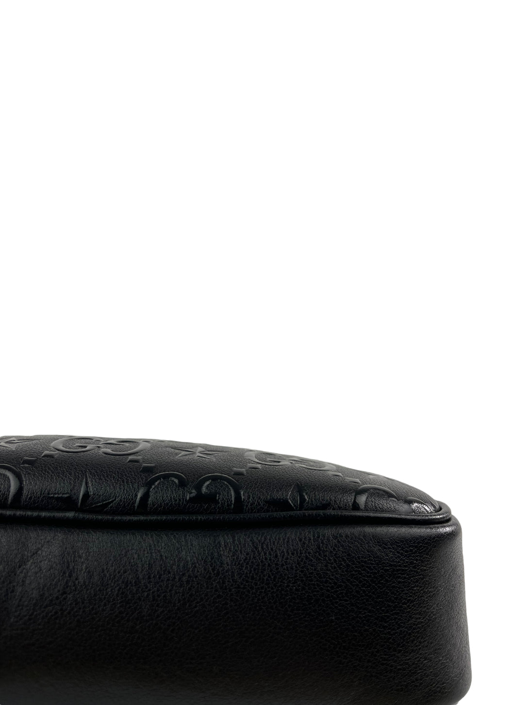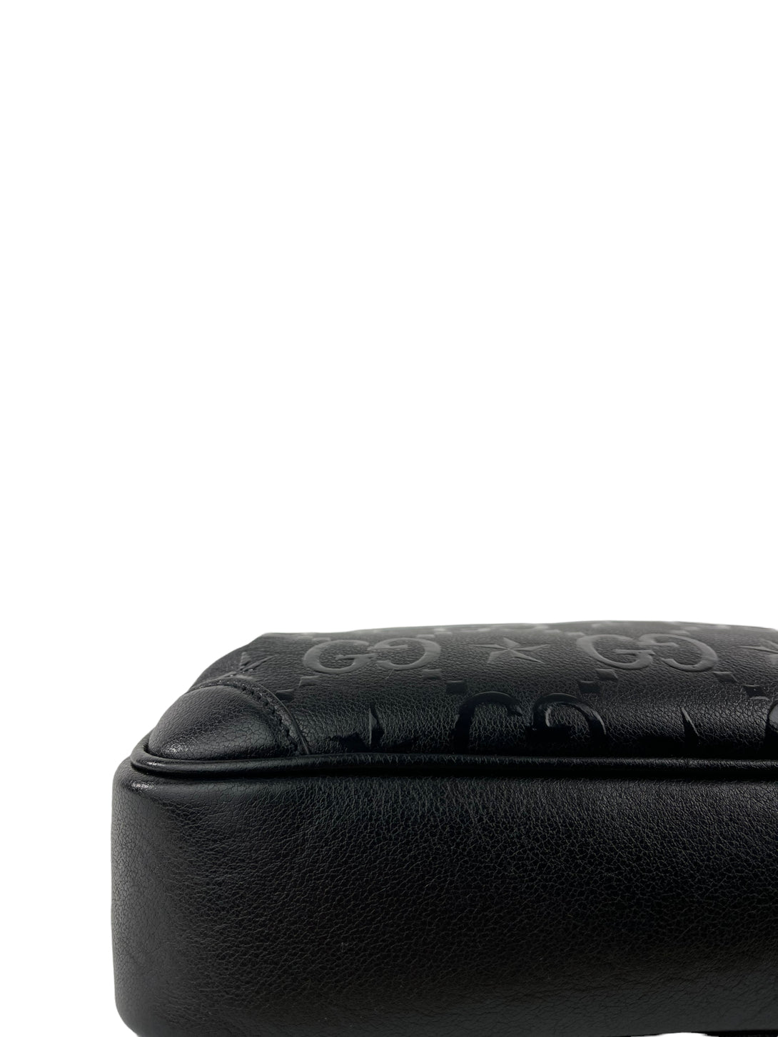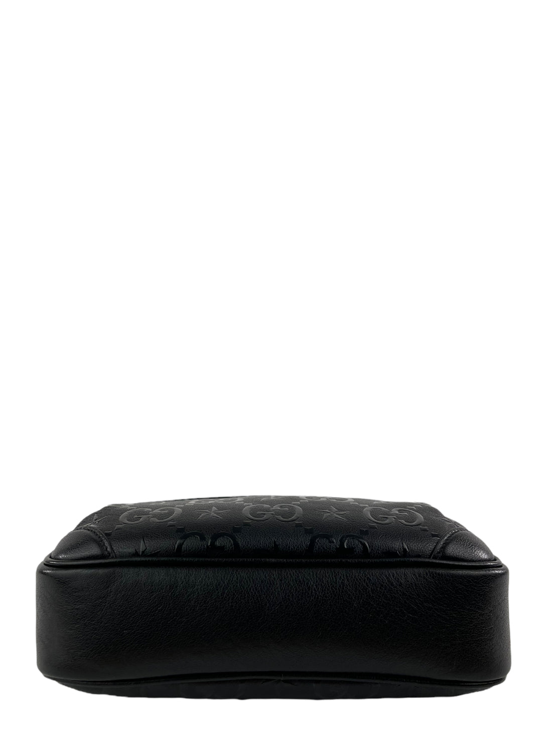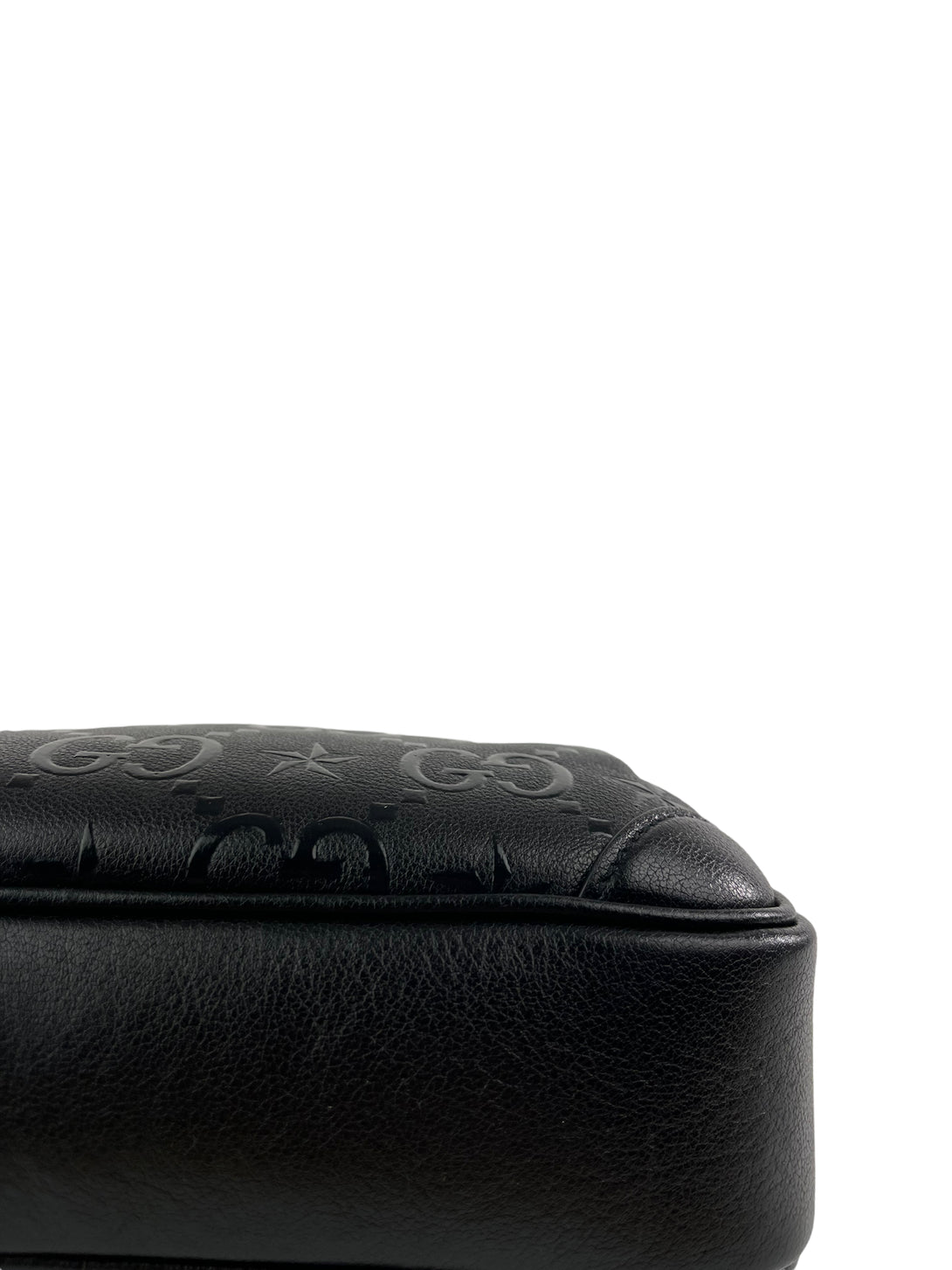 Gucci GG & Star Embossed Print Black Leather Crossbody
