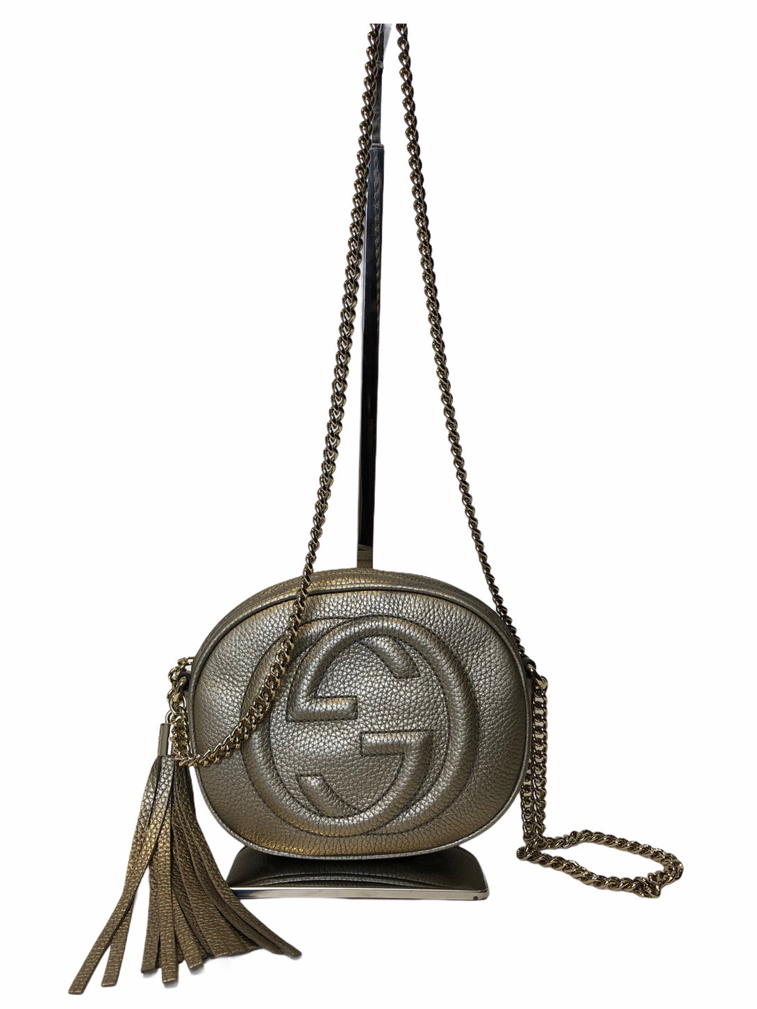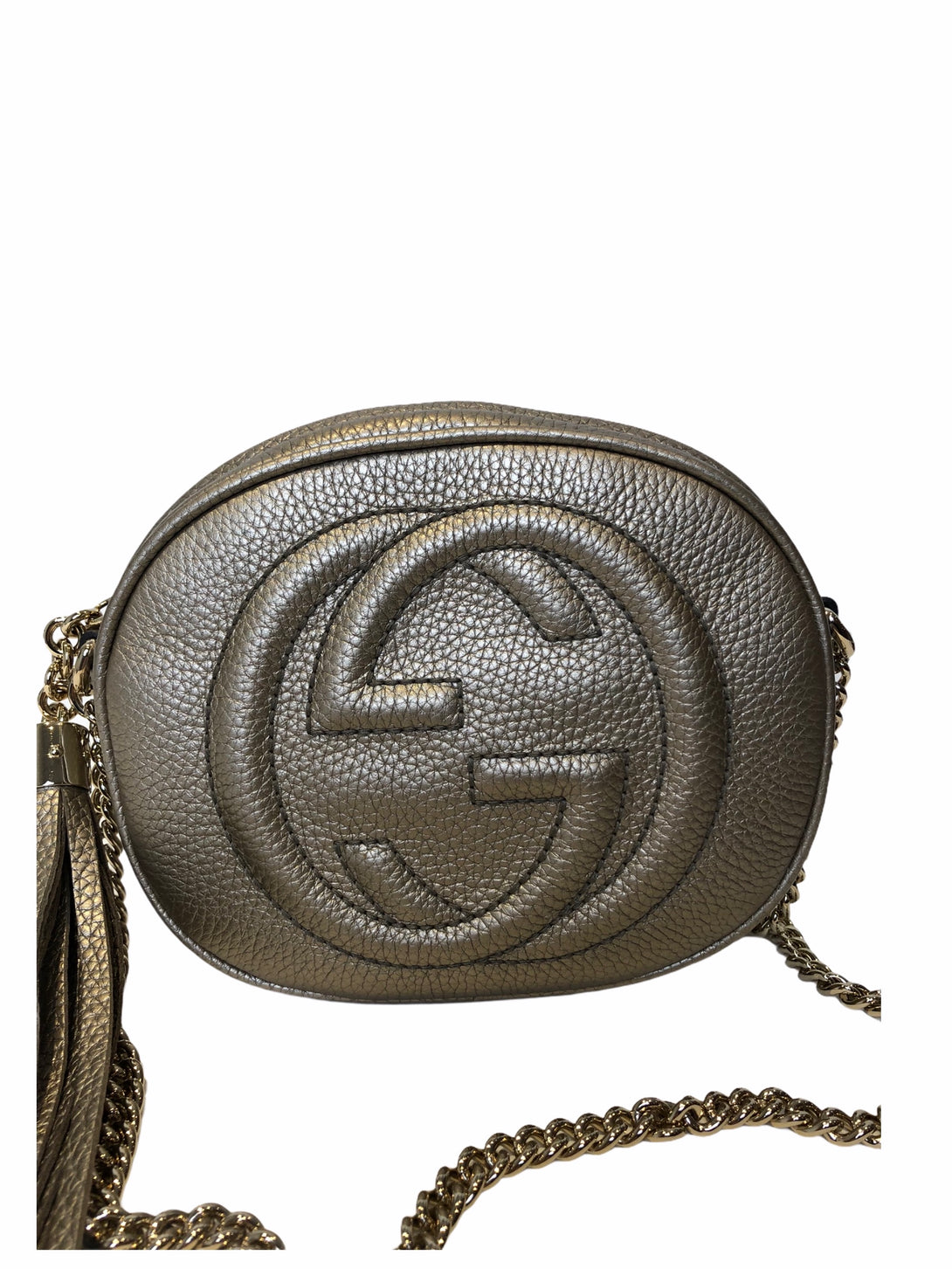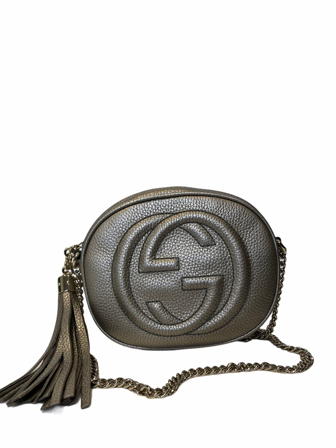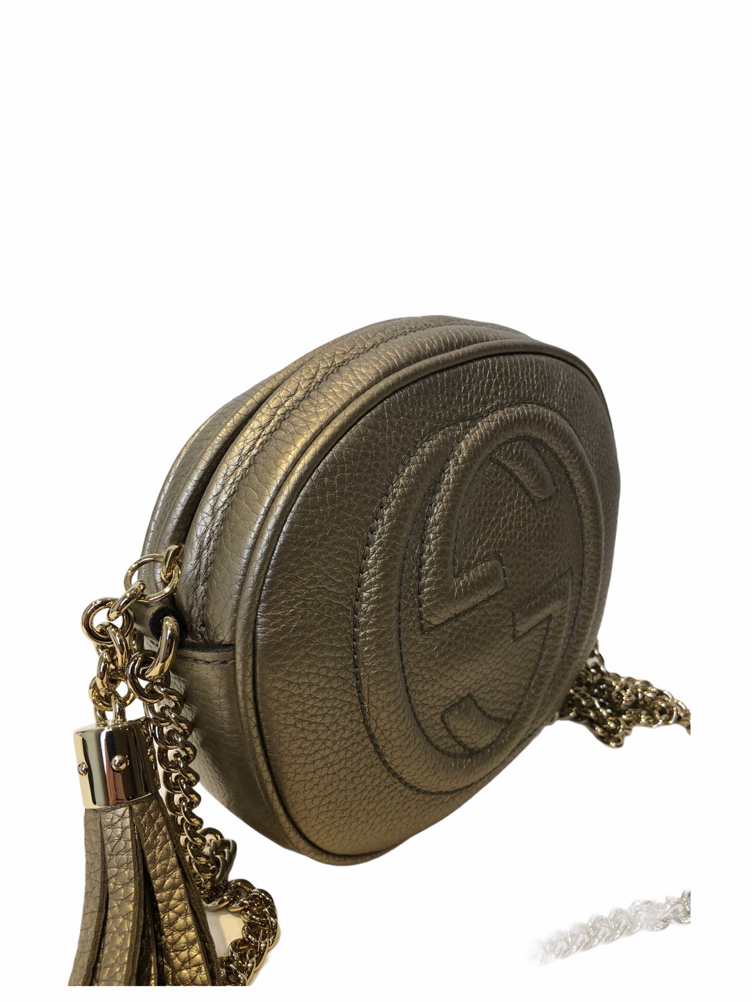 Gucci Gold Leather GG Supreme Mini Crossbody