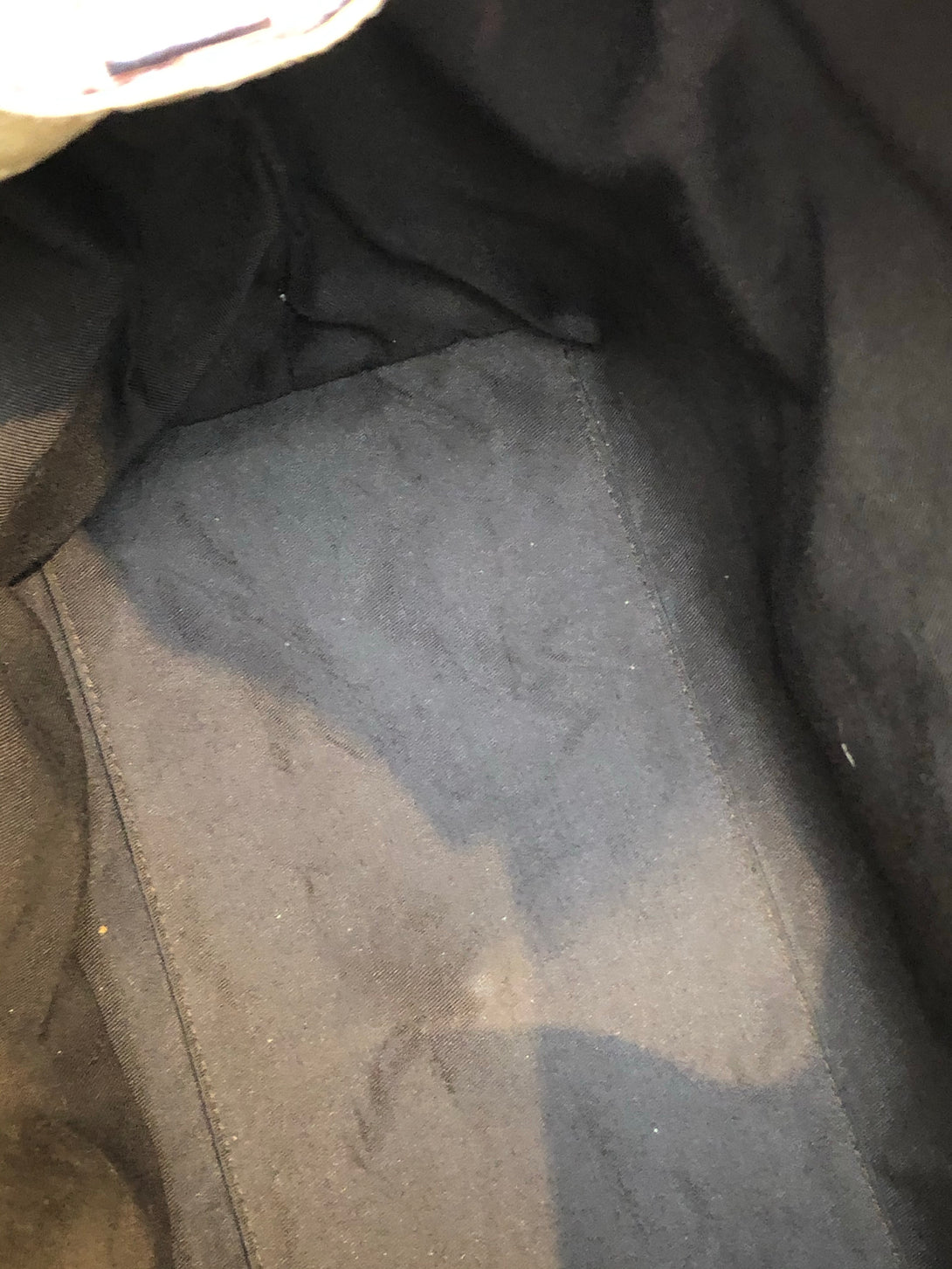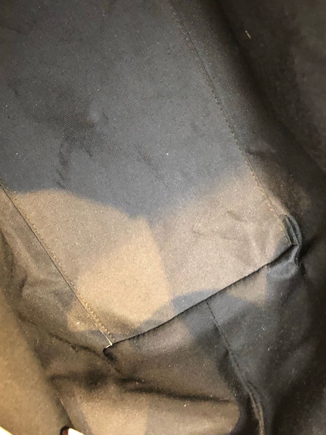 Good: Items show more prominent wear such as noticeable discoloration, stains and snags to fabric. May have worn corners and handles, tarnishing to hardware and creasing to leather. Pen or make up marks may be visible in the interior of the bag.