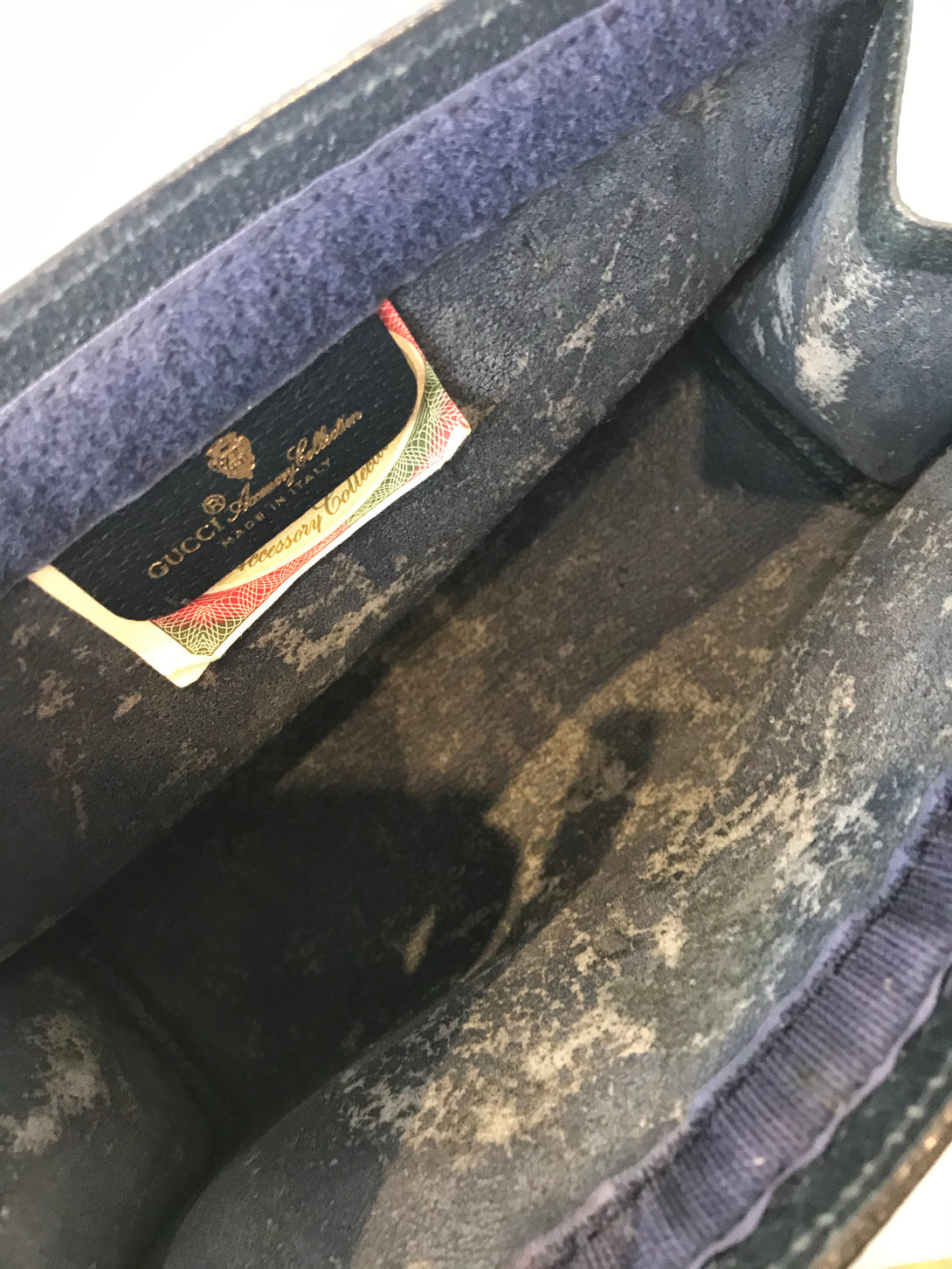 Good: Items show more prominent wear such as noticeable discoloration, stains and snags to fabric. May have worn corners and handles, tarnishing to hardware and creasing to leather. Pen or make up marks may be visible in the interior of the bag.