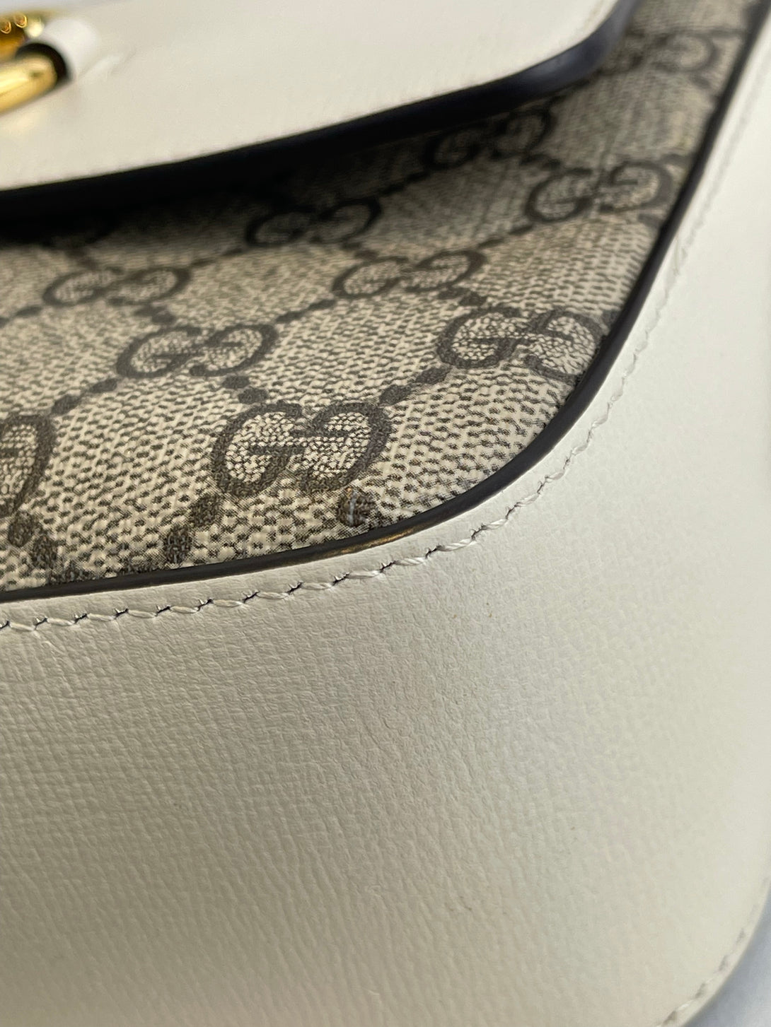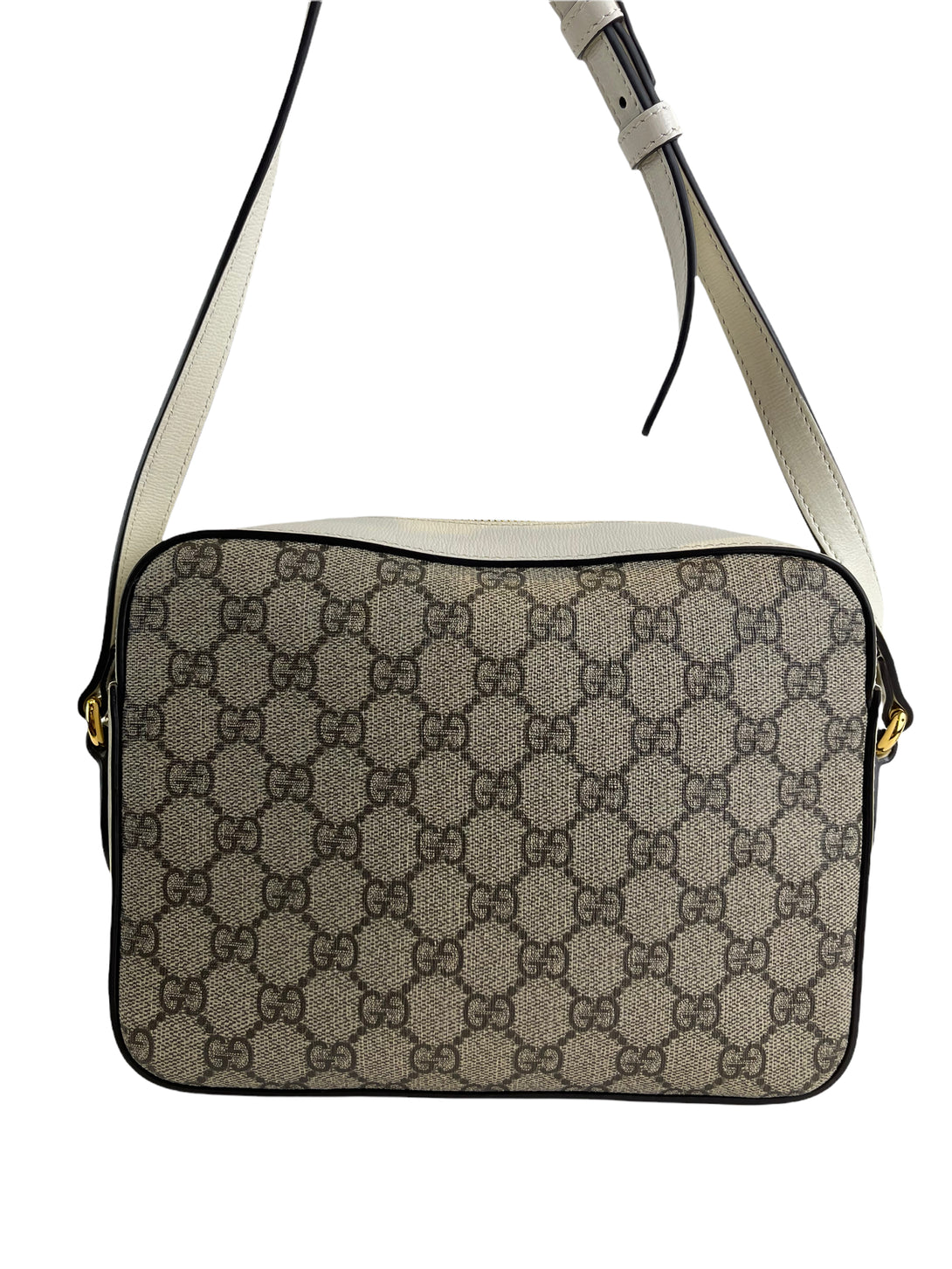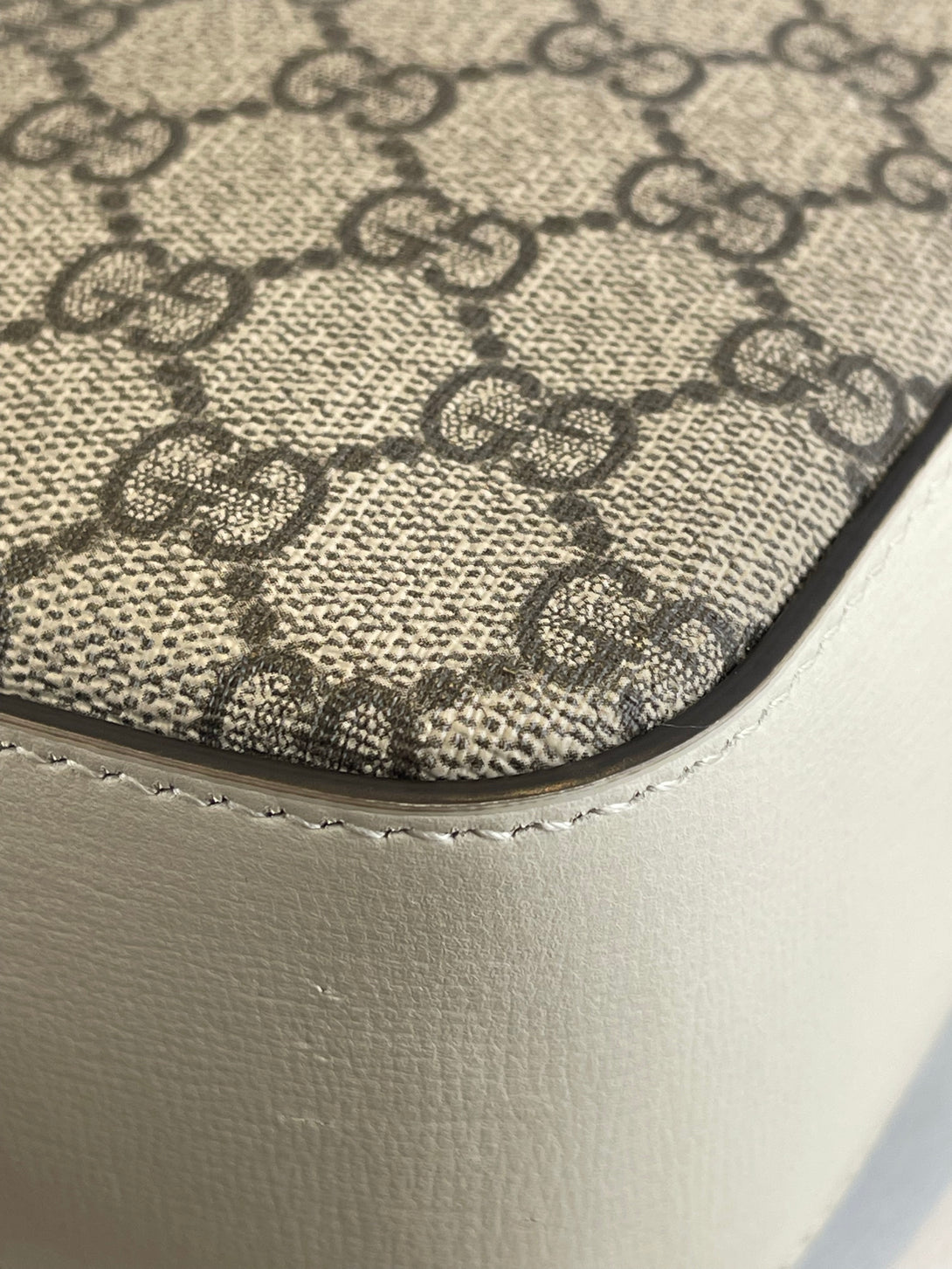 Gucci White Leather & Monogram Canvas Crossbody