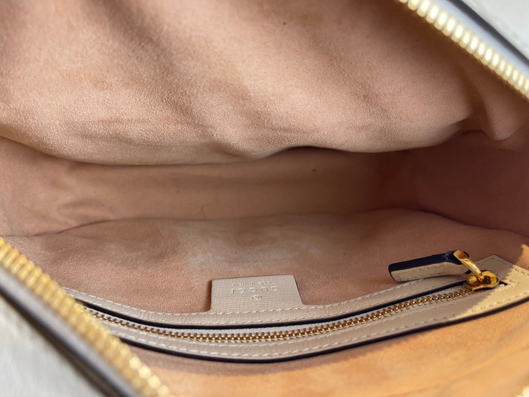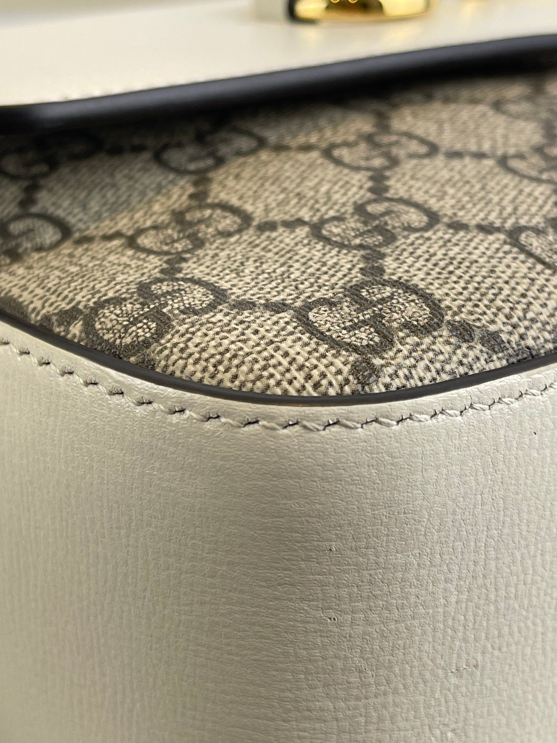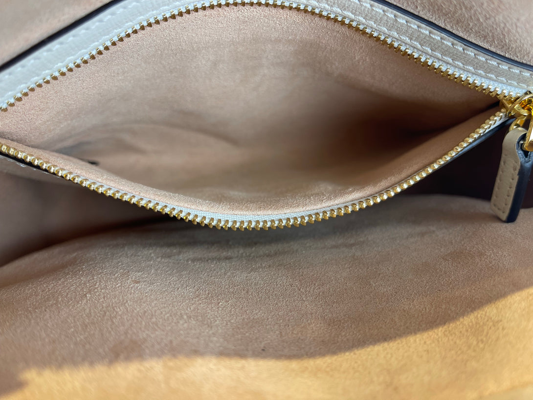 Gucci White Leather & Monogram Canvas Crossbody