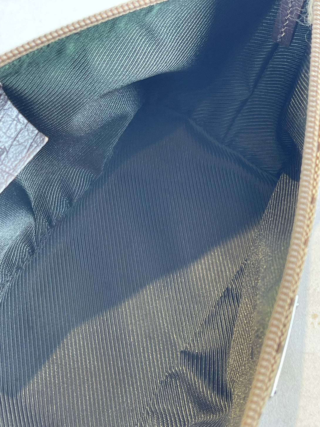 Fair: Very prominent wear, may have holes on corners, severe scuffs, piping of bag showing and pen marks to exterior. Interior may have pen or make up marks.