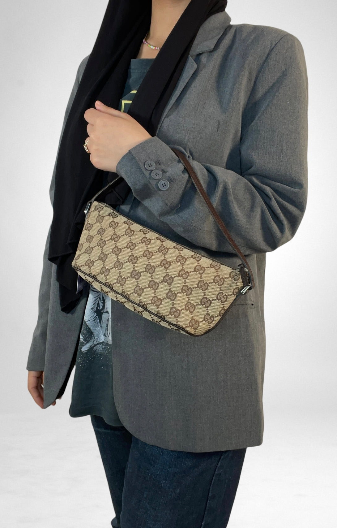 Gucci GG Monogram Canvas & Brown Leather Pochette