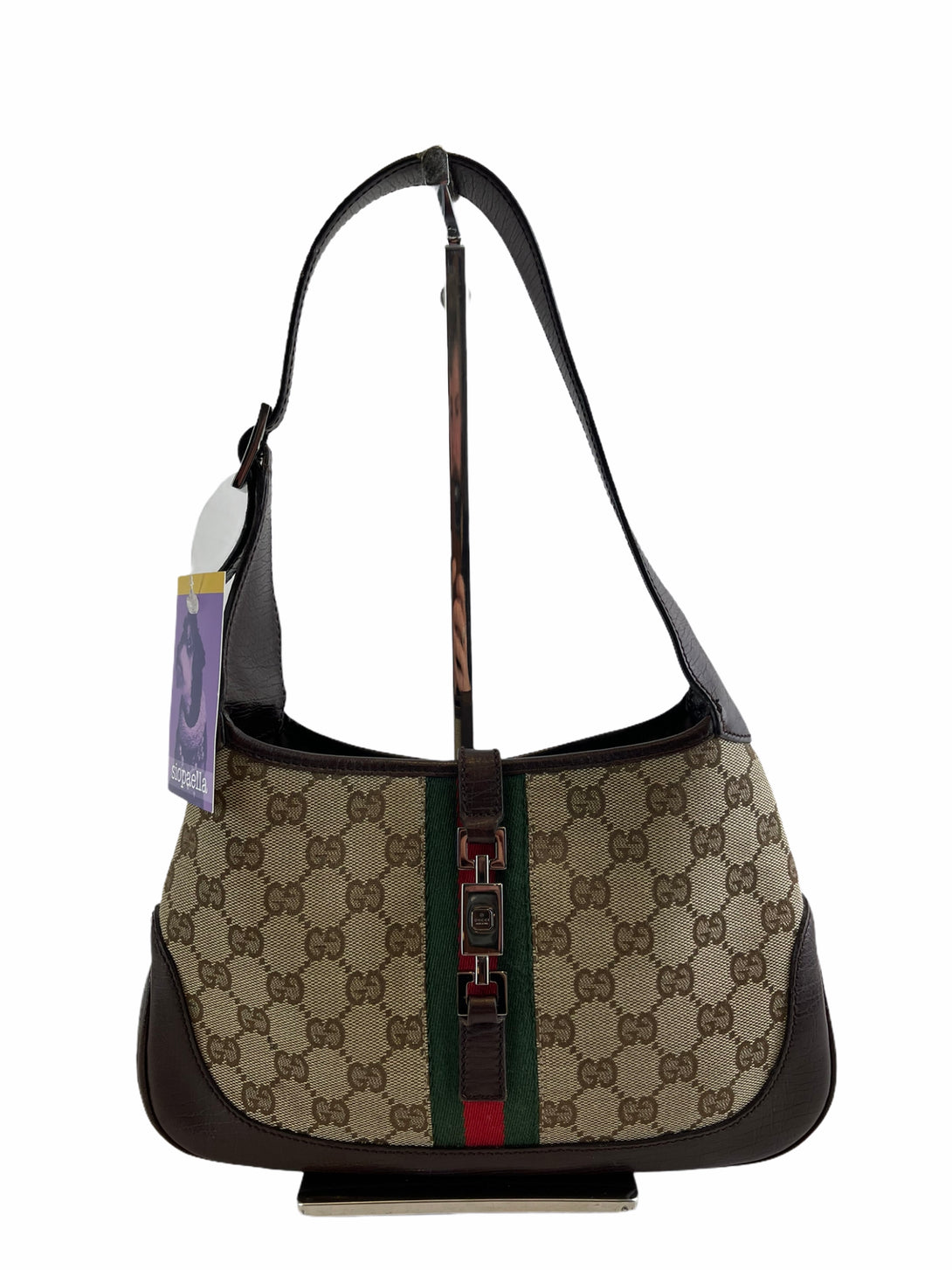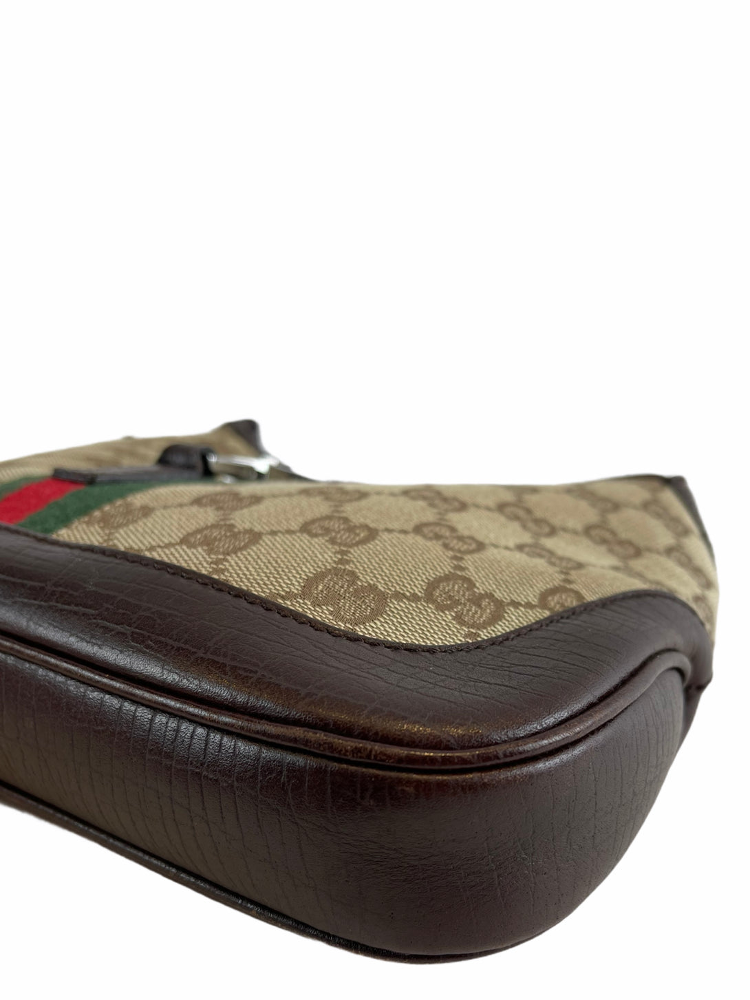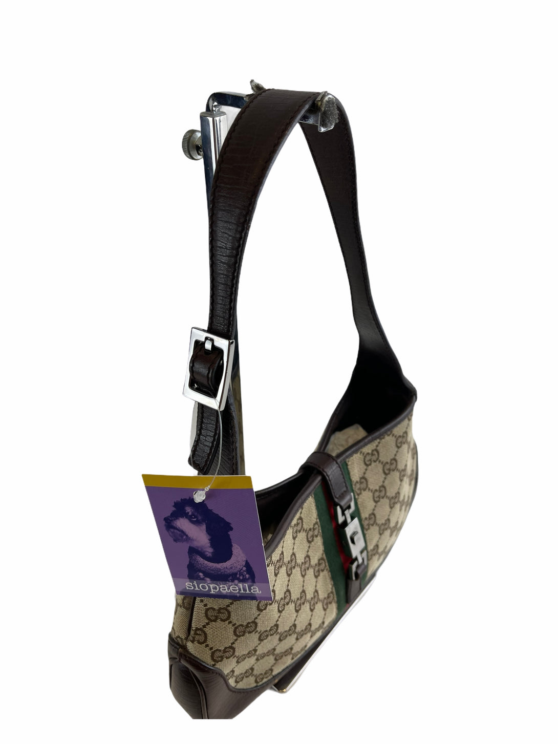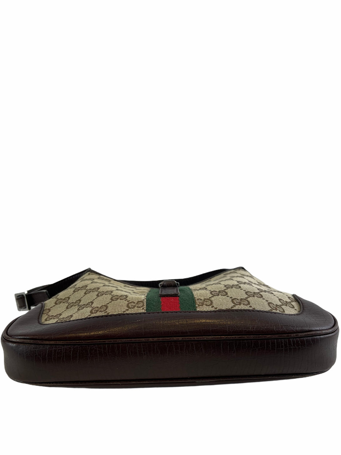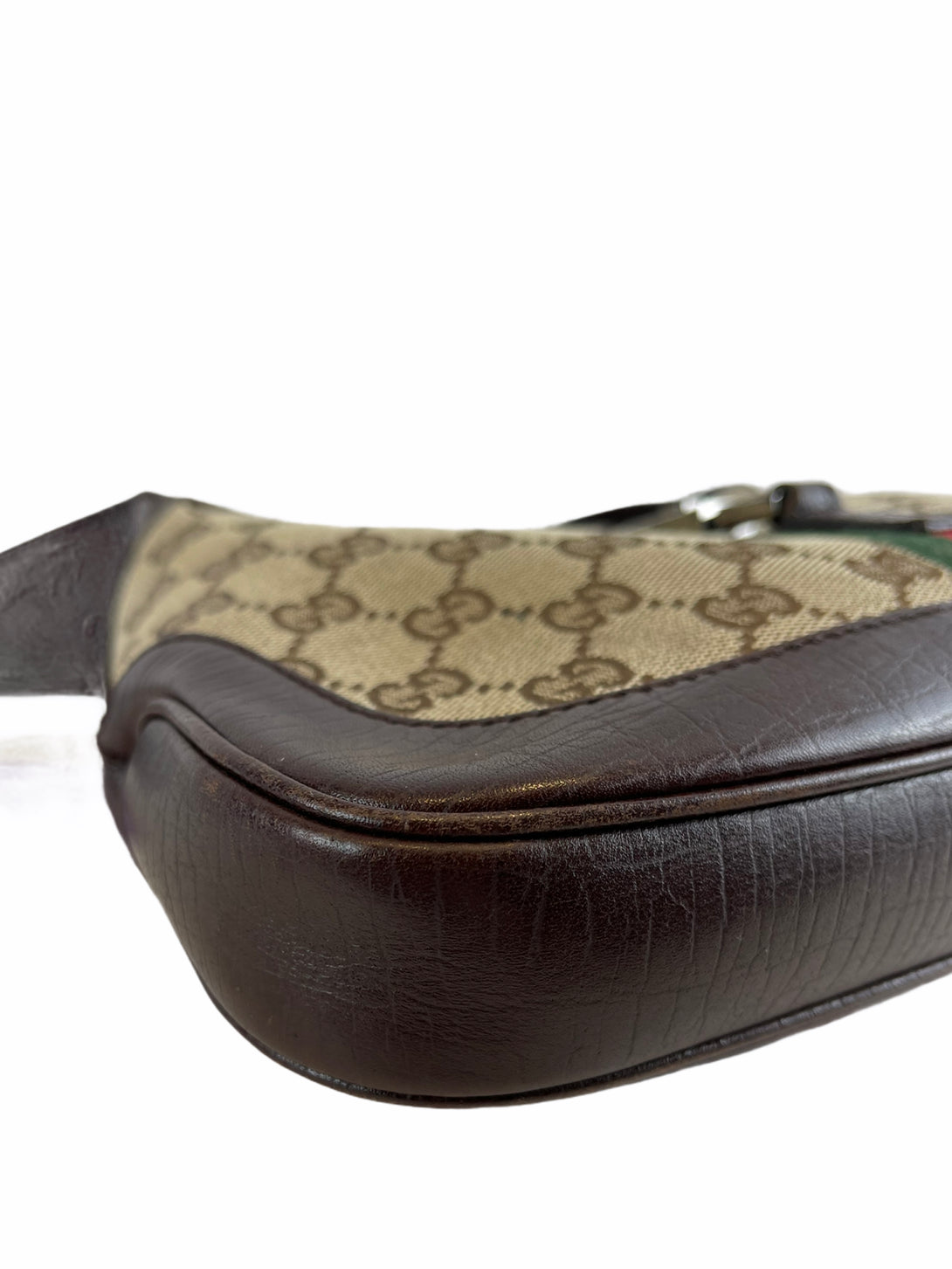 Gucci Monogram Canvas Leather ‘Web Jackie O Hobo GG’ Shoulder Bag