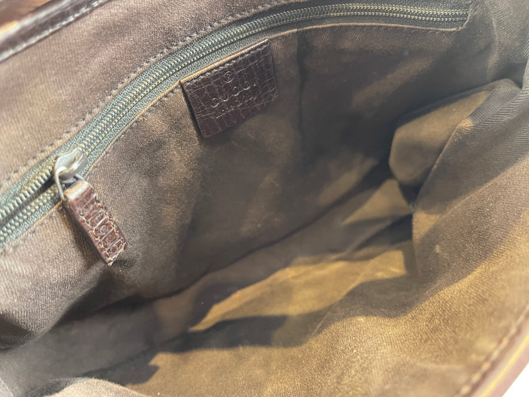 Good: Items show more prominent wear such as noticeable discoloration, stains and snags to fabric. May have worn corners and handles, tarnishing to hardware and creasing to leather. Pen or make up marks may be visible in the interior of the bag.