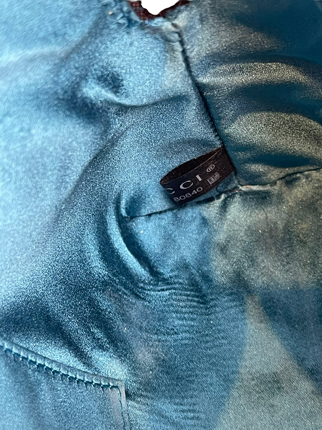Good: Items show more prominent wear such as noticeable discoloration, stains and snags to fabric. May have worn corners and handles, tarnishing to hardware and creasing to leather. Pen or make up marks may be visible in the interior of the bag.