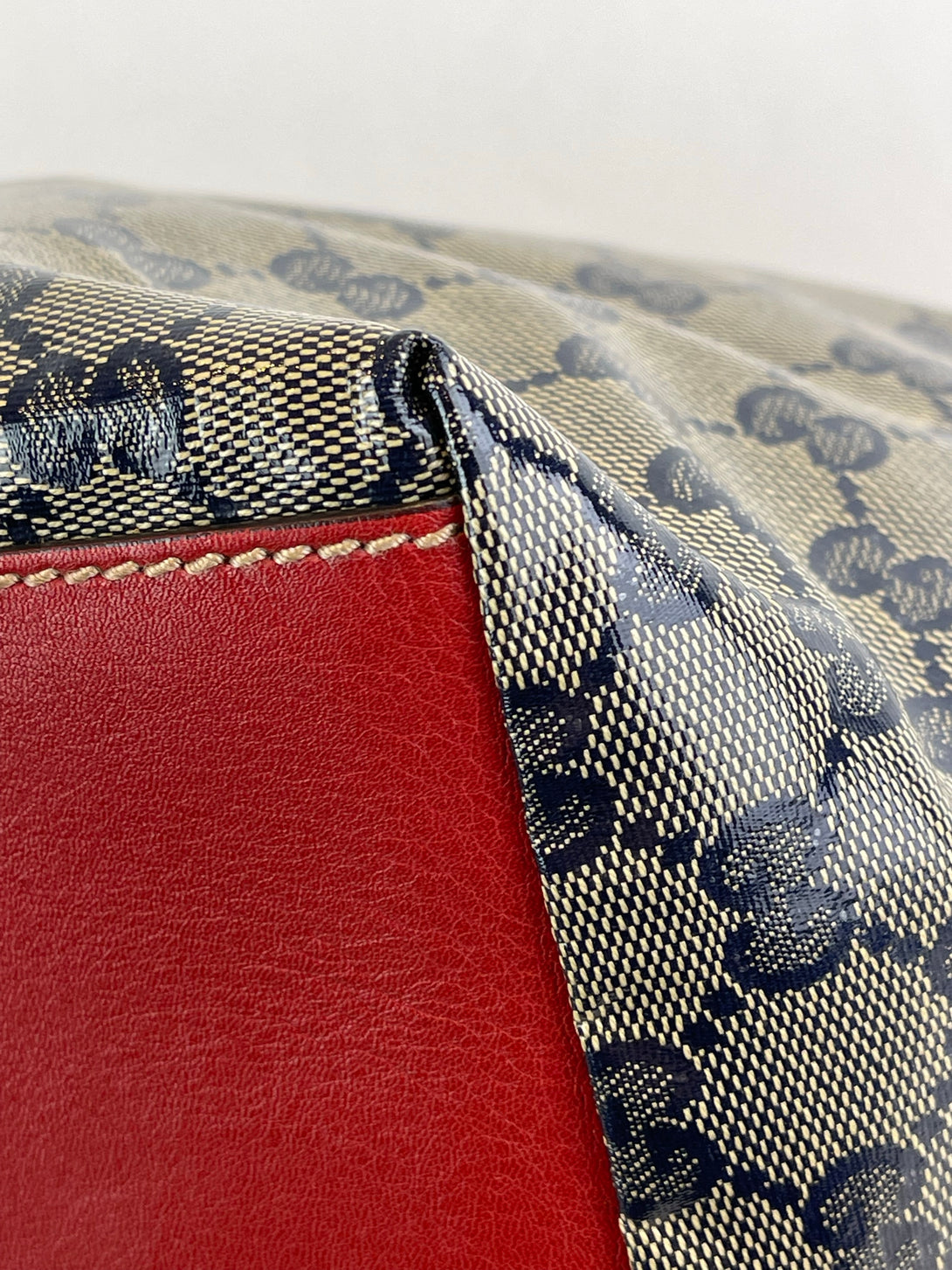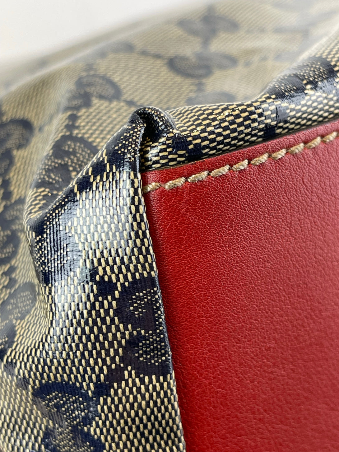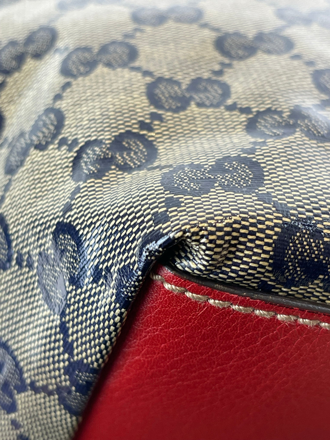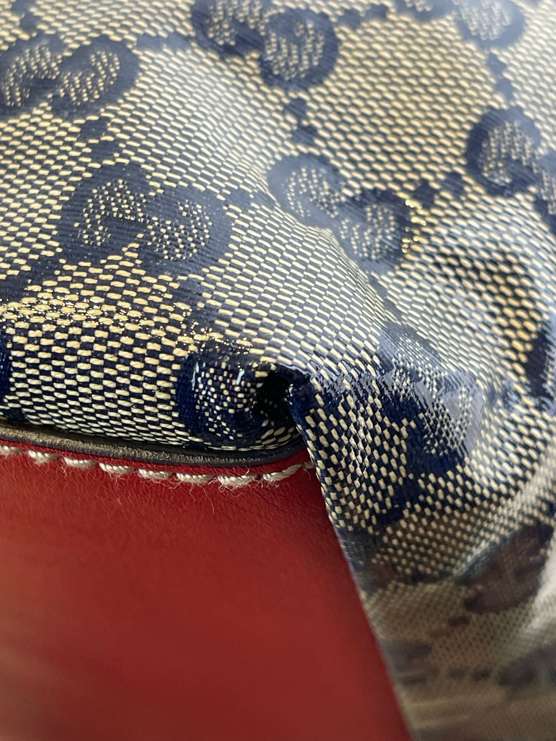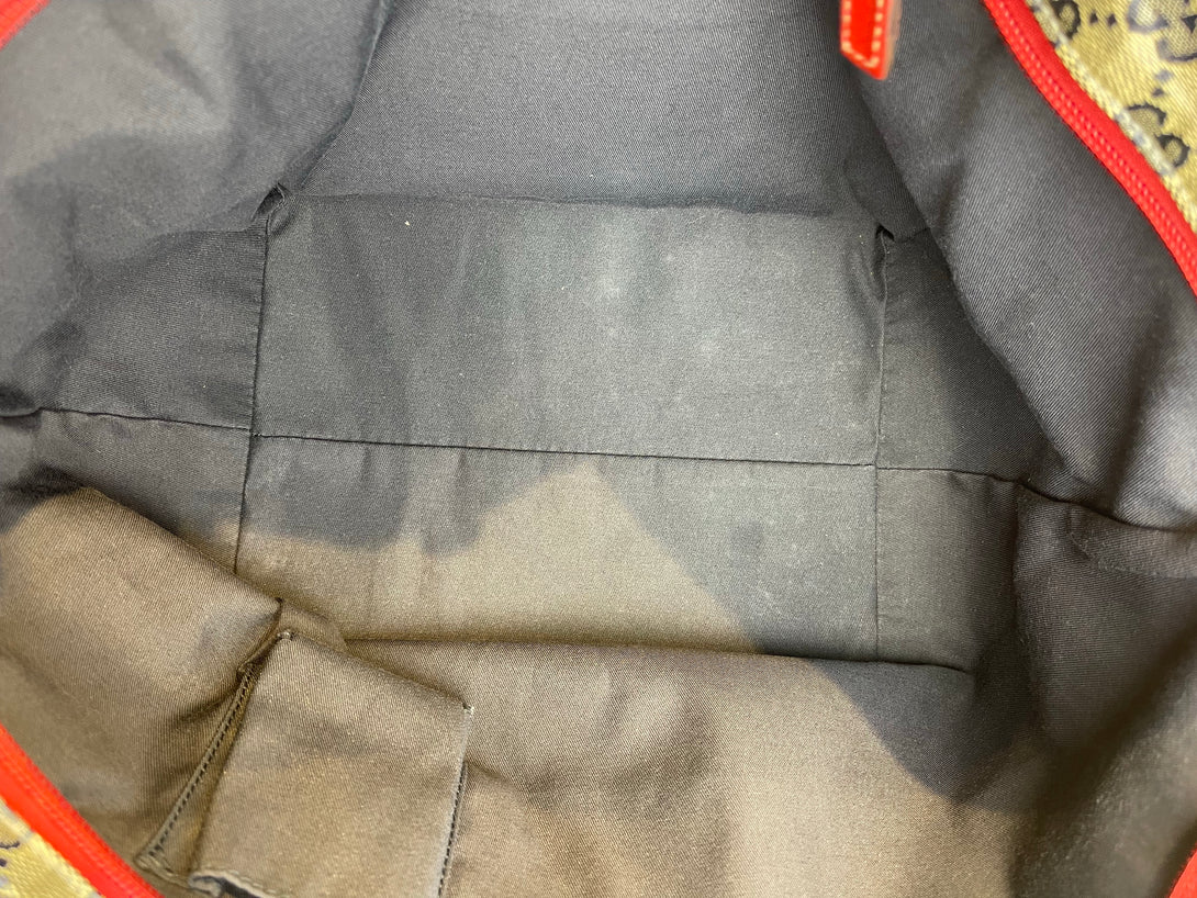 Good: Items show more prominent wear such as noticeable discoloration, stains and snags to fabric. May have worn corners and handles, tarnishing to hardware and creasing to leather. Pen or make up marks may be visible in the interior of the bag.