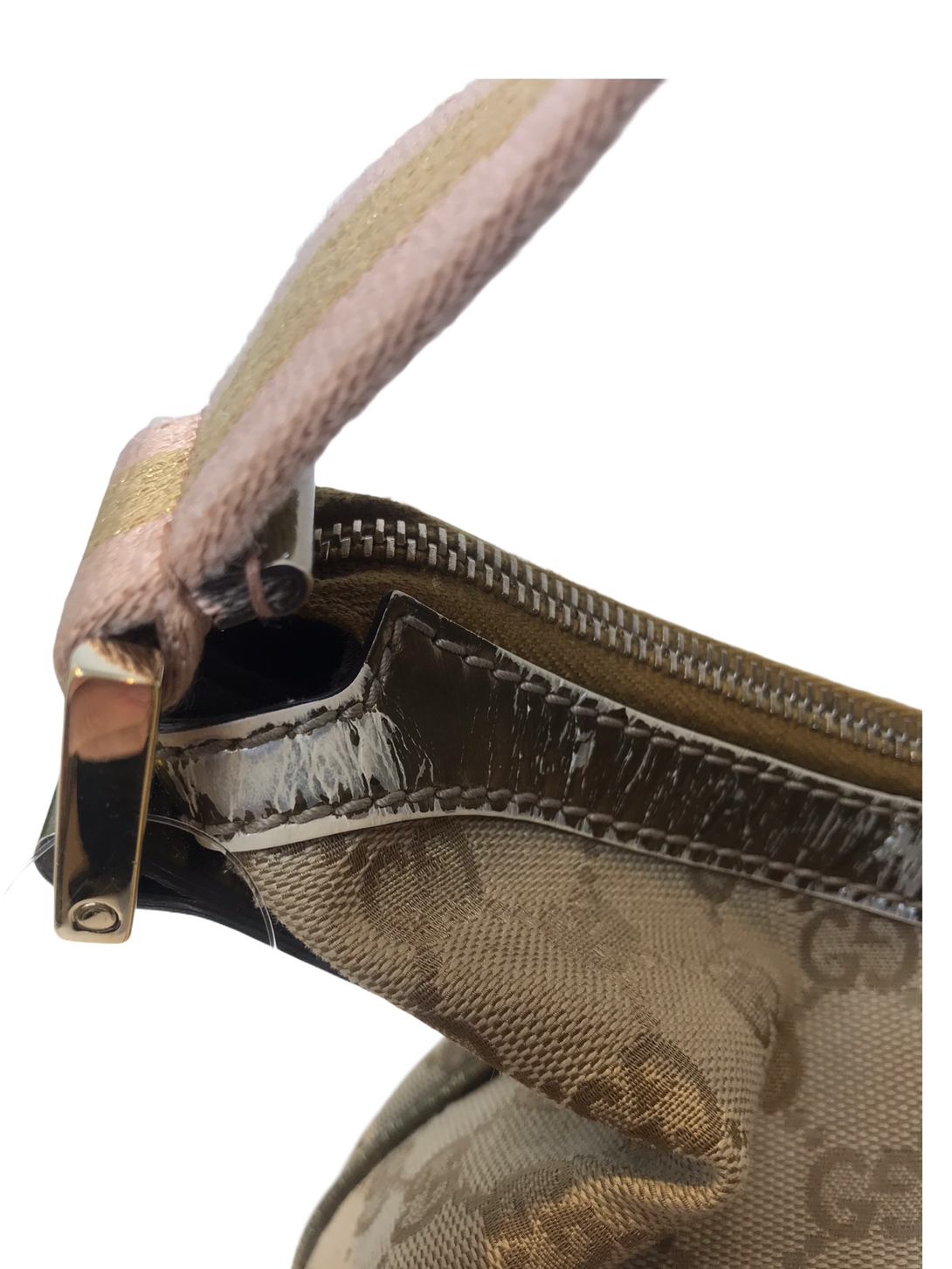 Good: Items show more prominent wear such as noticeable discoloration, stains and snags to fabric. May have worn corners and handles, tarnishing to hardware and creasing to leather. Pen or make up marks may be visible in the interior of the bag.