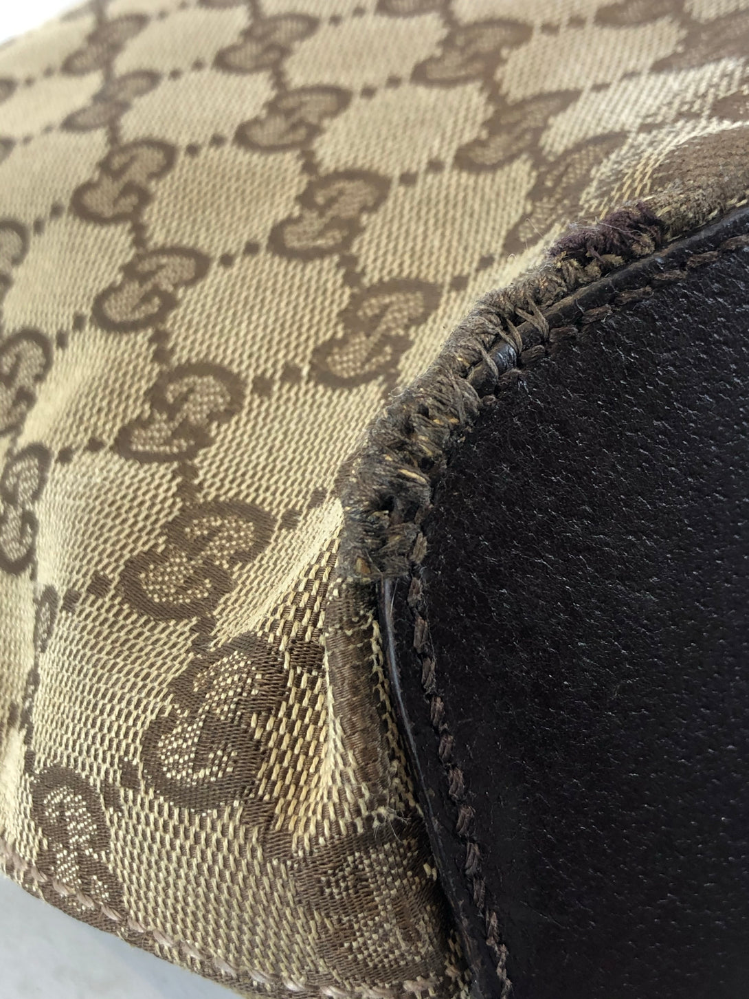 Fair: Very prominent wear, may have holes on corners, severe scuffs, piping of bag showing and pen marks to exterior. Interior may have pen or make up marks.