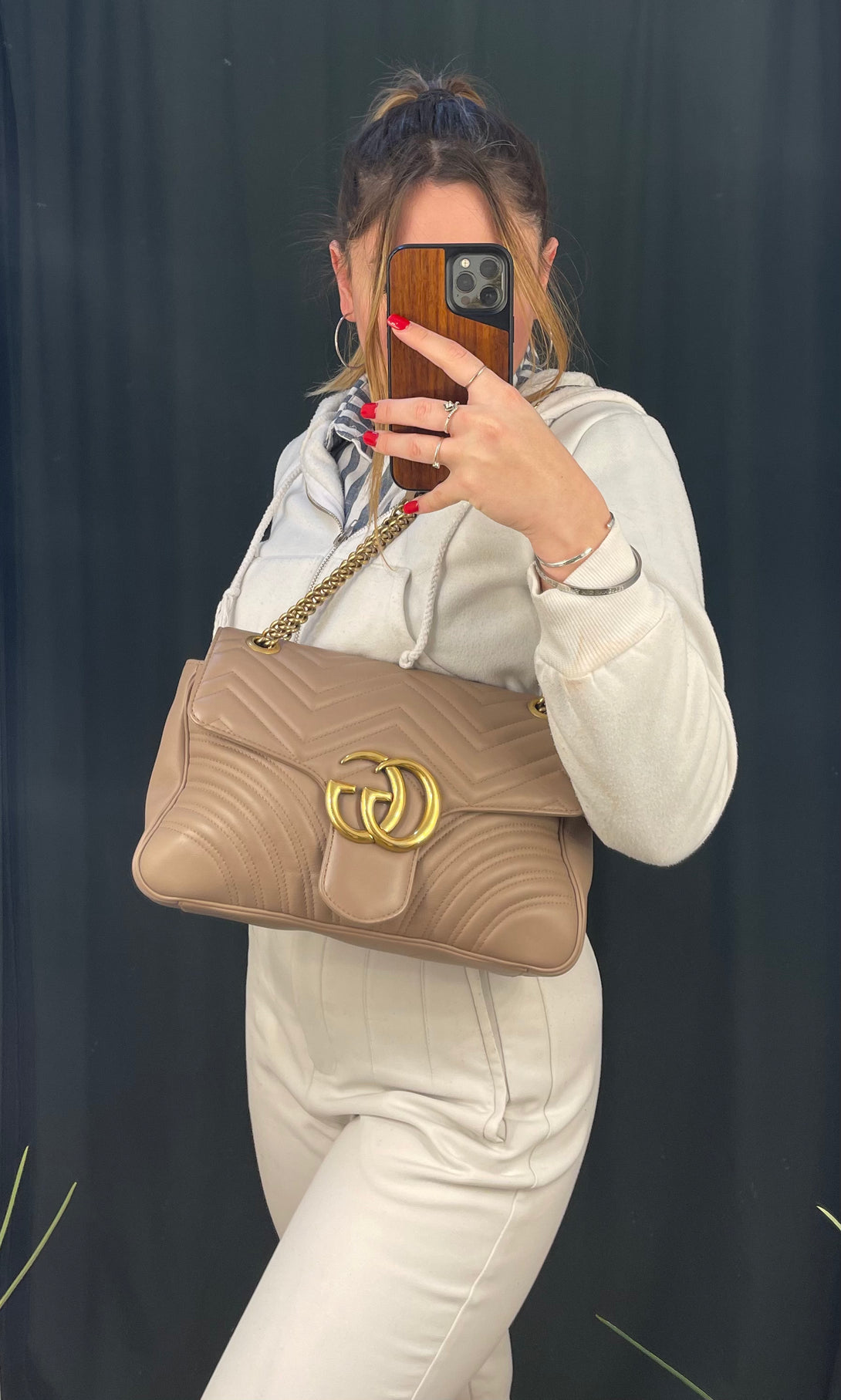 Gucci Nude Leather Medium 'Marmot' Shoulder Bag
