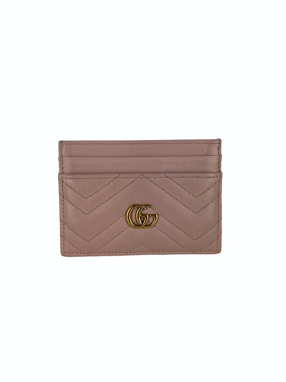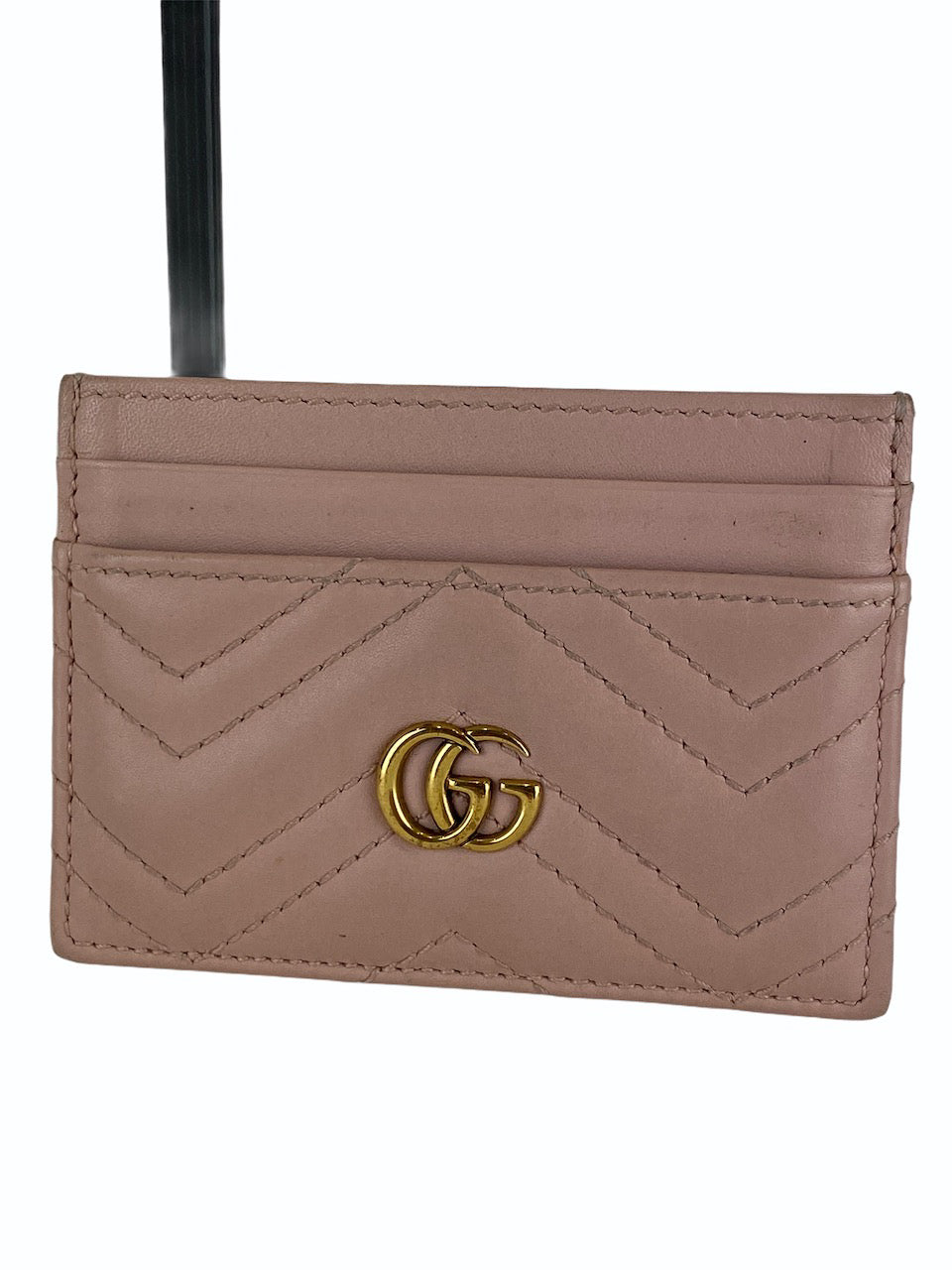 - Mid pink leather card holder with signature GG in goldtone to the front