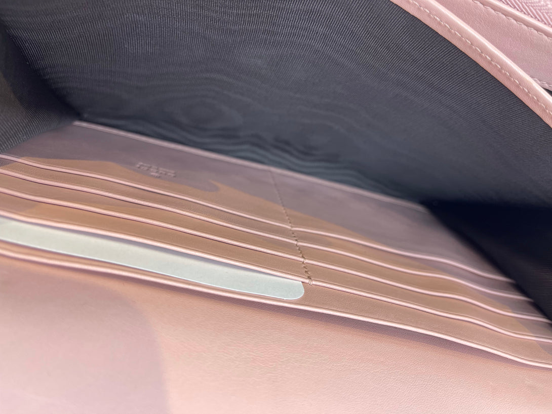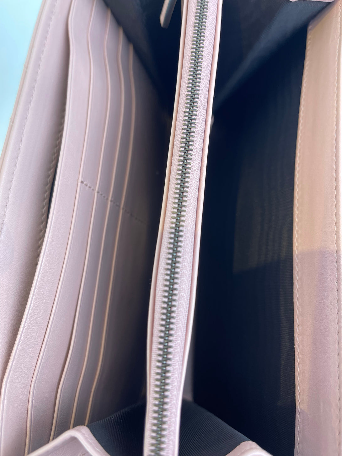 Good: Items show more prominent wear such as noticeable discoloration, stains and snags to fabric. May have worn corners and handles, tarnishing to hardware and creasing to leather. Pen or make up marks may be visible in the interior of the bag.