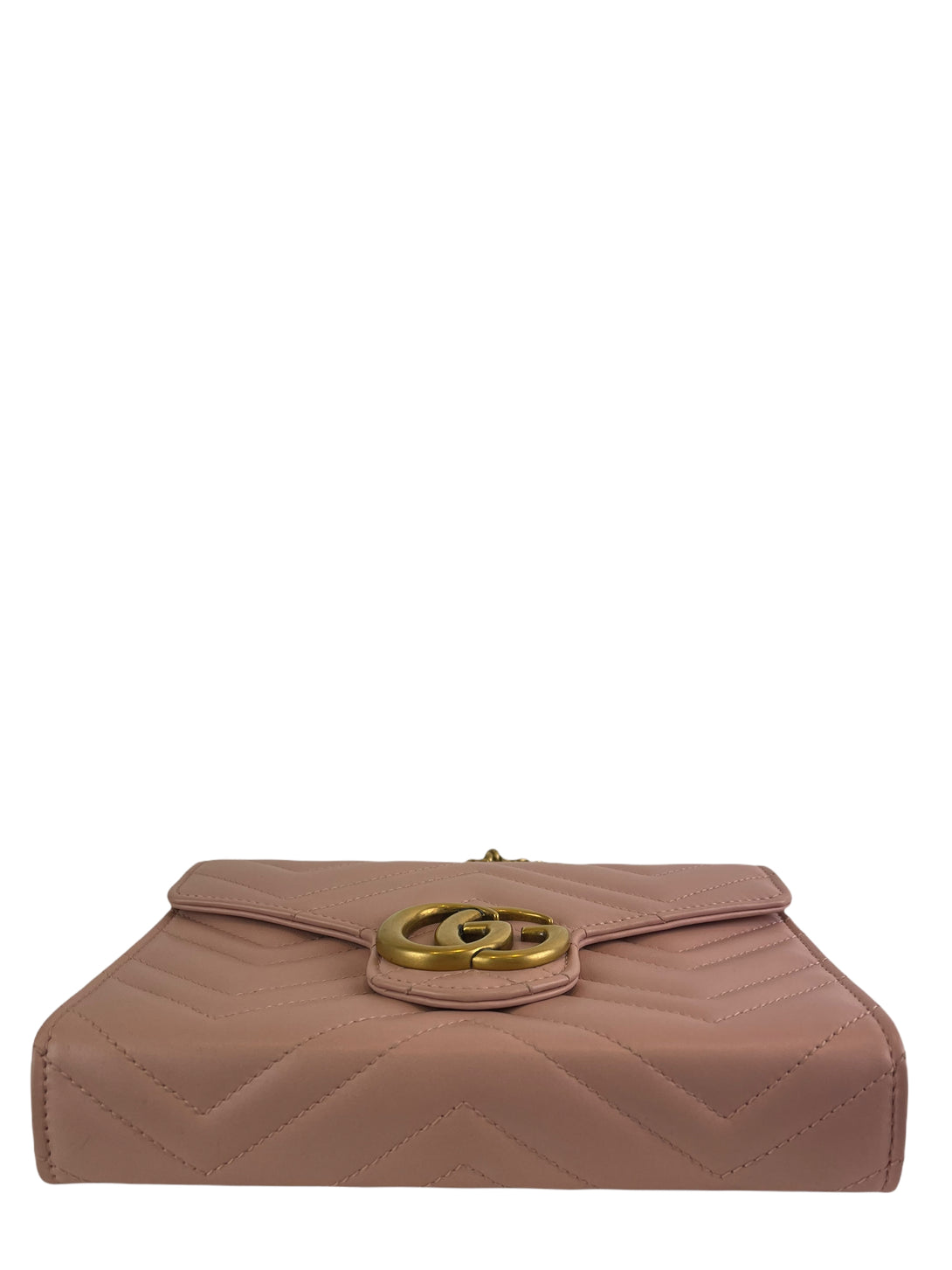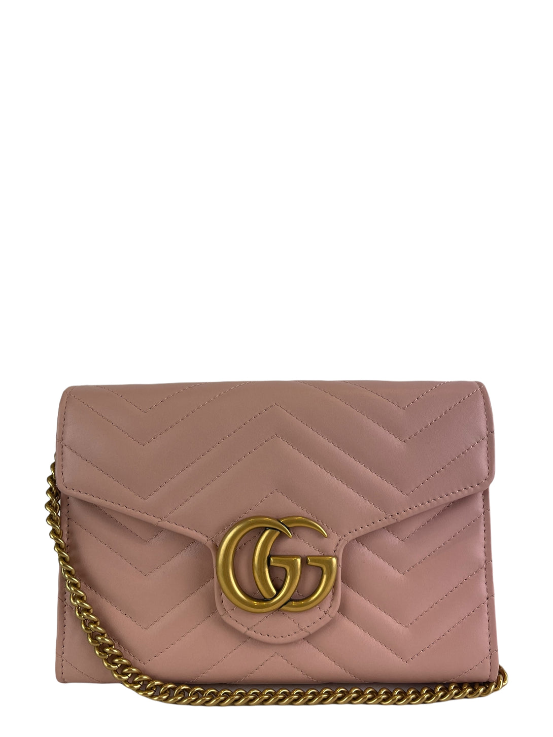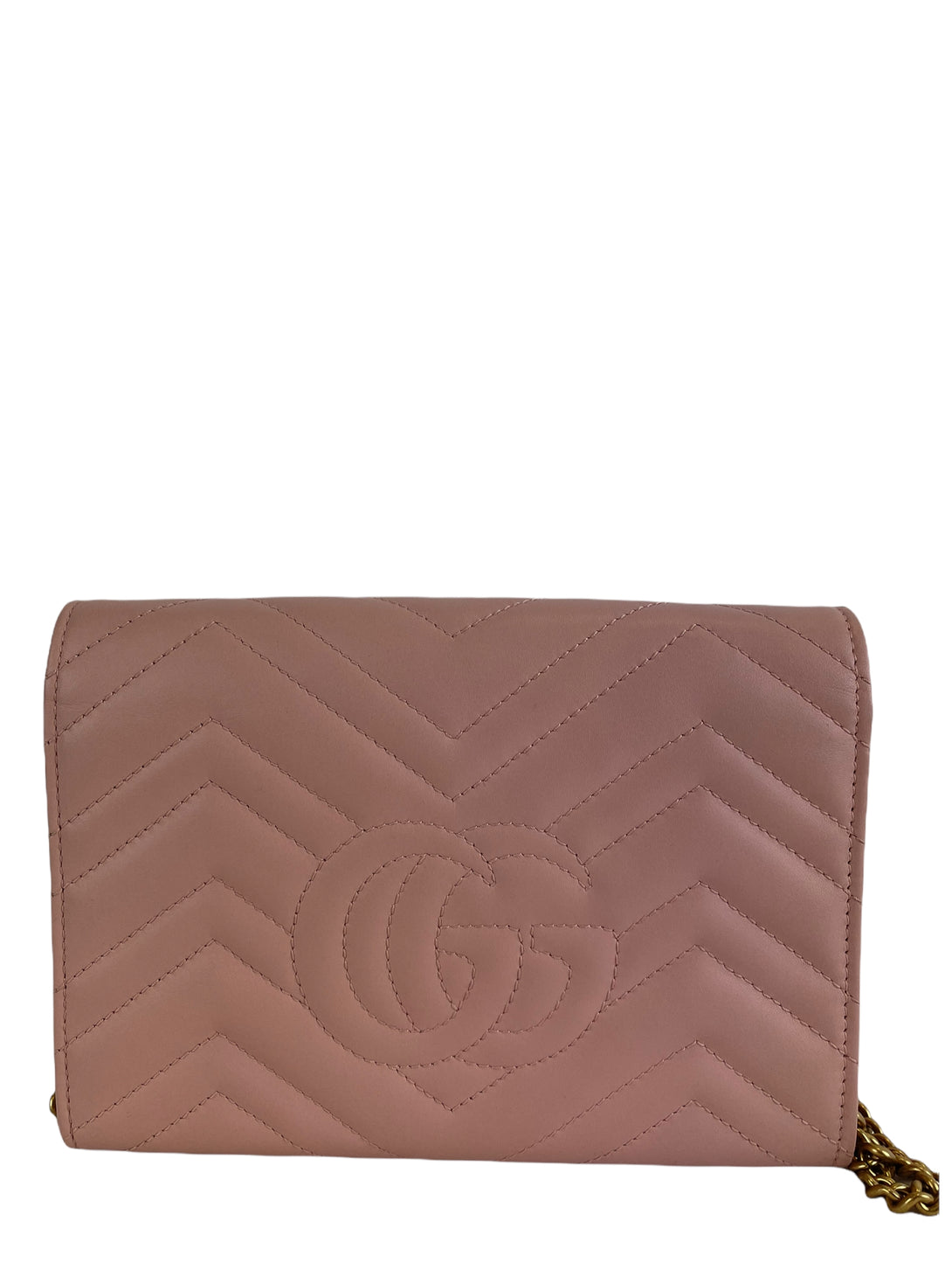 Gucci Pink Chevron Leather "Marmont" Chain Bag