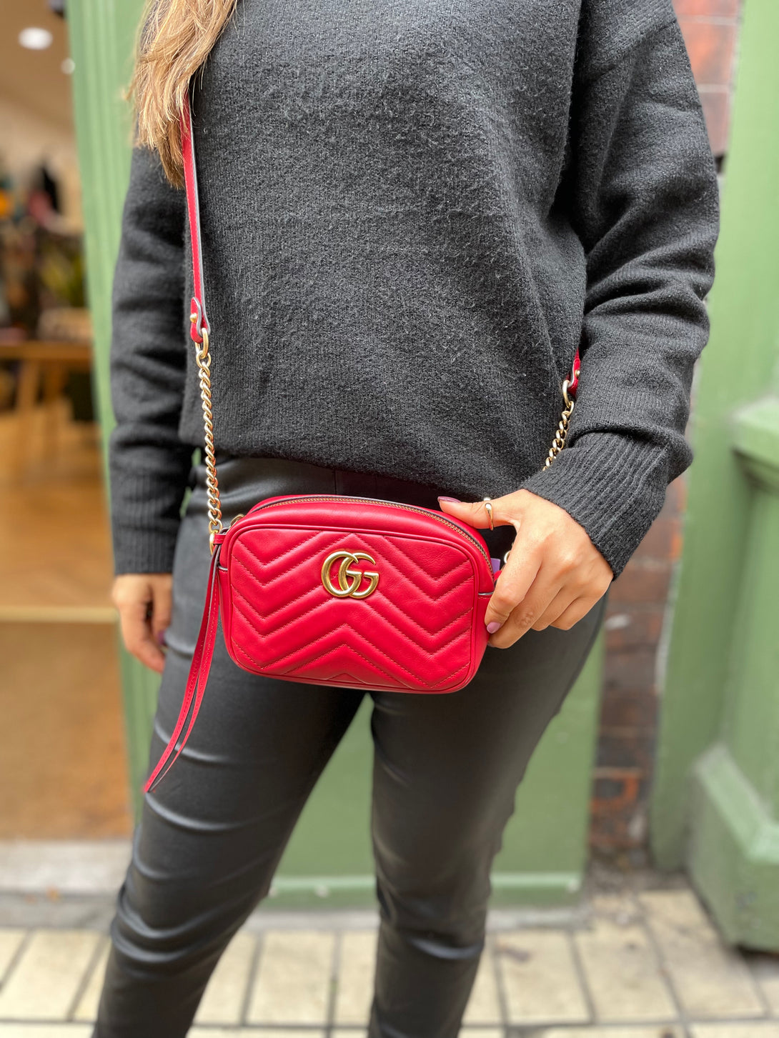 Gucci Red Chevron Leather Mini Marmont Crossbody