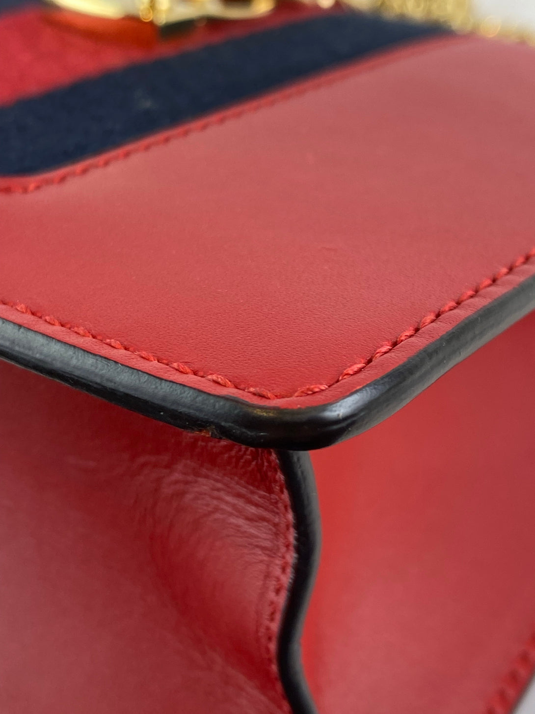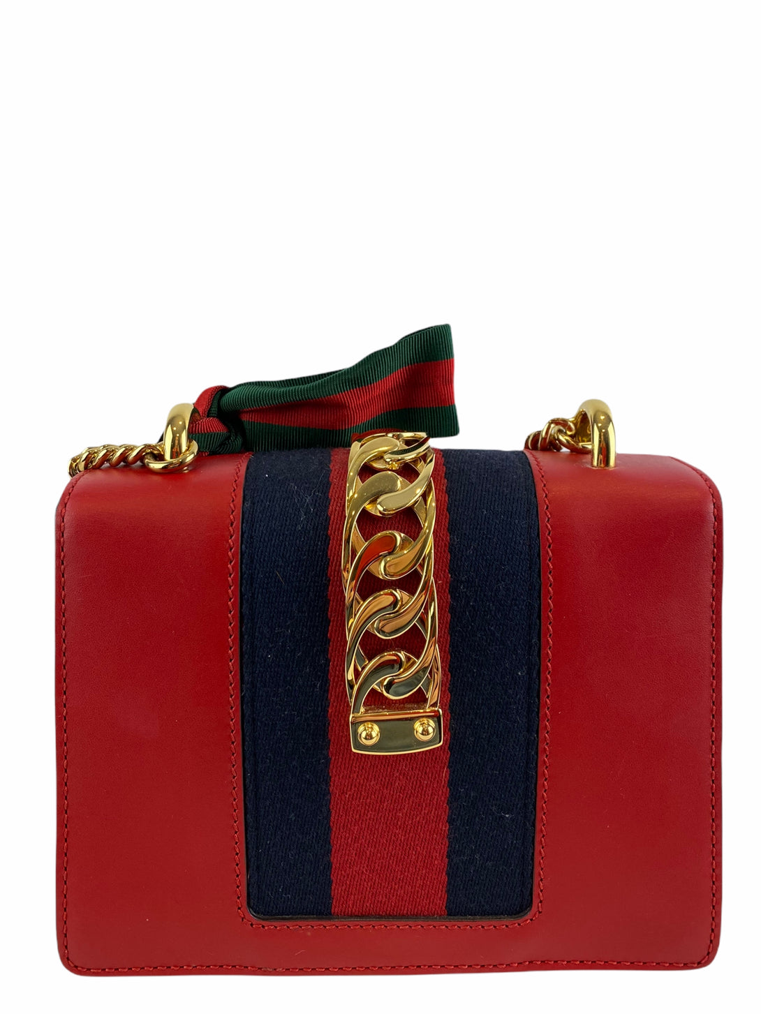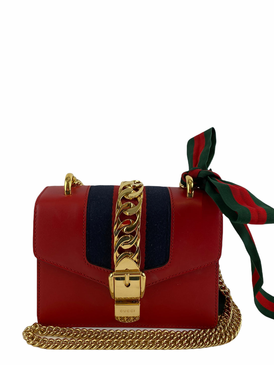 Gucci Small Red Leather ‘Sylvie’ Chain Crossbody