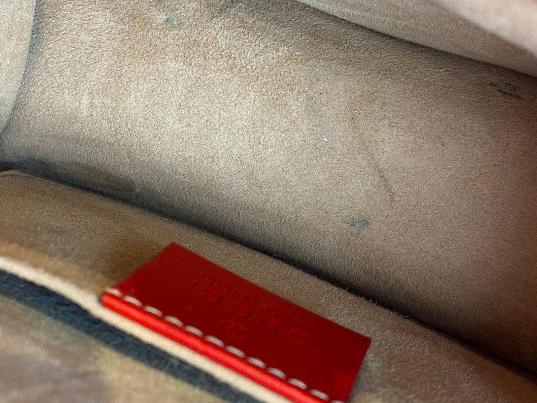 Good: Items show more prominent wear such as noticeable discoloration, stains and snags to fabric. May have worn corners and handles, tarnishing to hardware and creasing to leather. Pen or make up marks may be visible in the interior of the bag.
