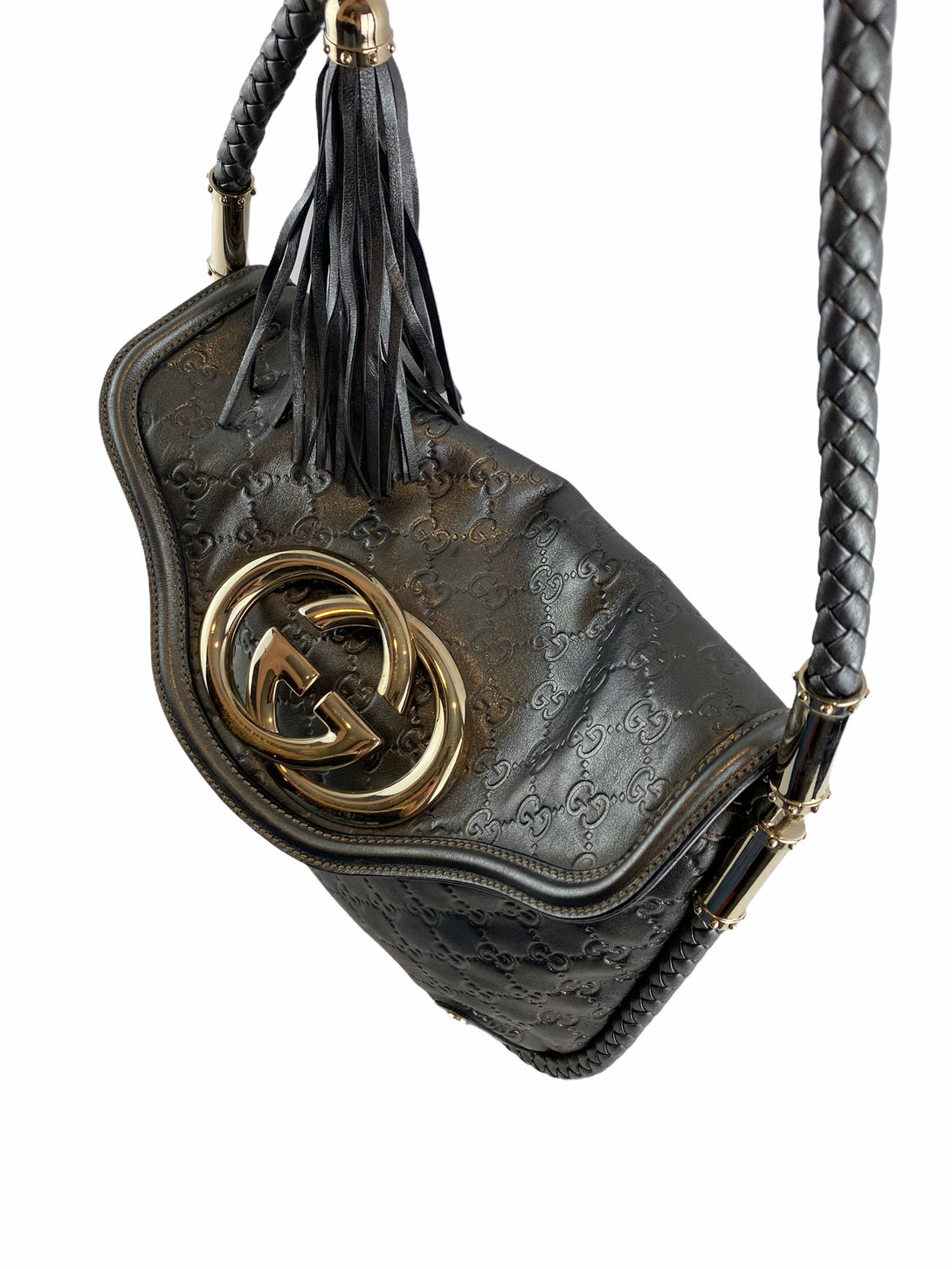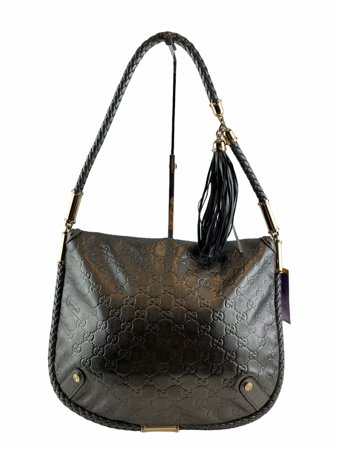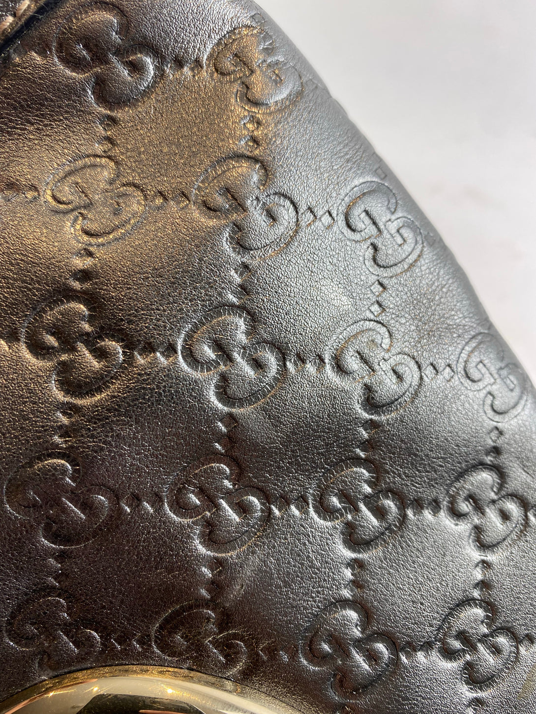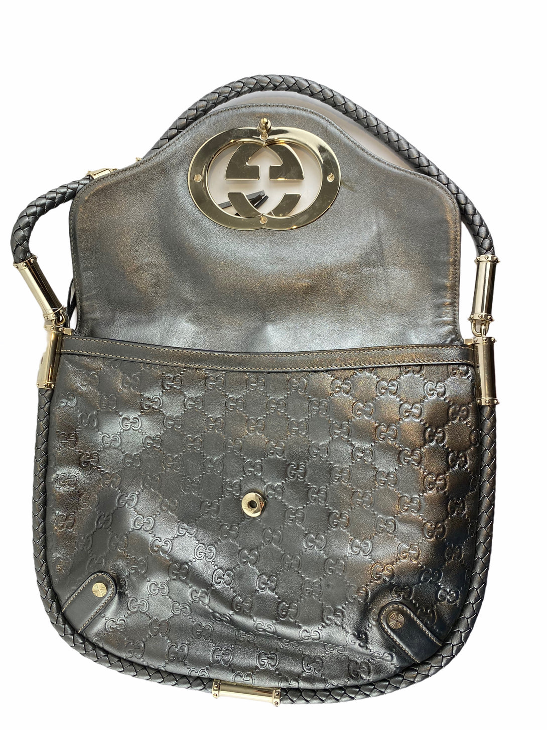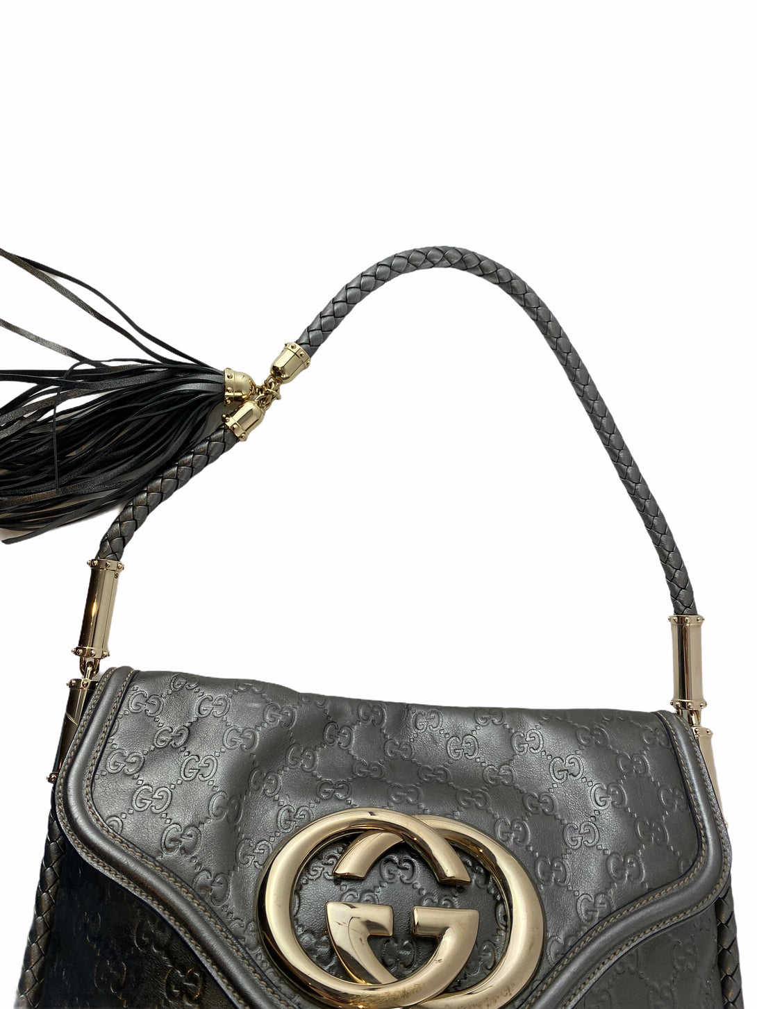 Gucci Silver Monogram Leather Shoulder Bag