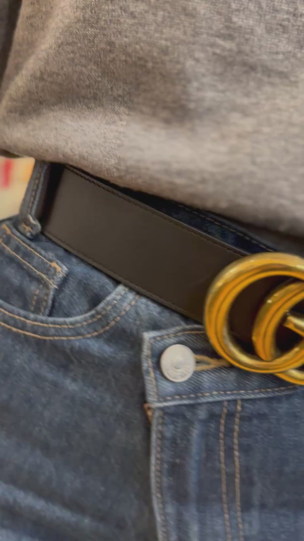 Gucci Black Leather GG Belt Size 32"