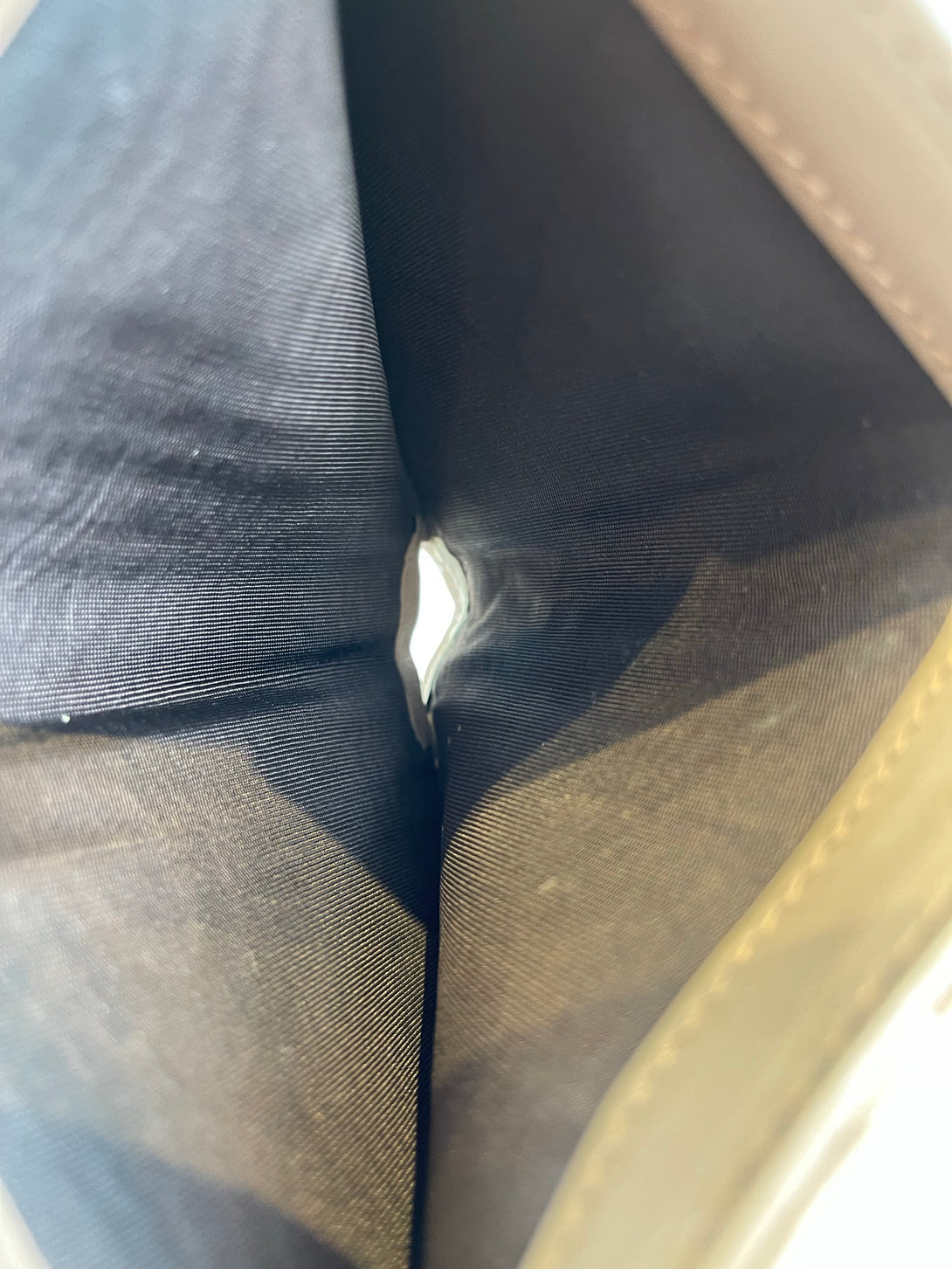 Good: Items show more prominent wear such as noticeable discoloration, stains and snags to fabric. May have worn corners and handles, tarnishing to hardware and creasing to leather. Pen or make up marks may be visible in the interior of the bag.