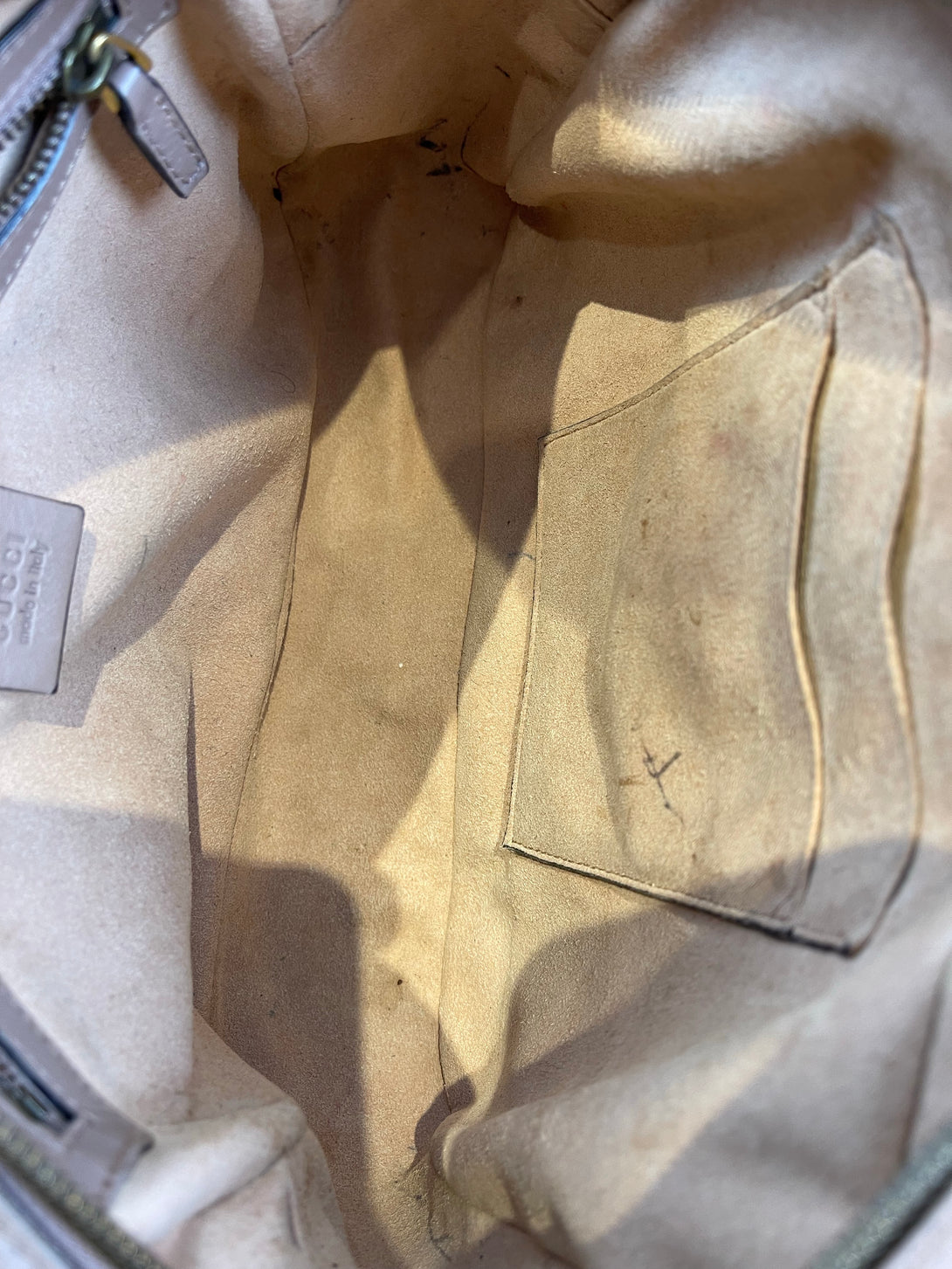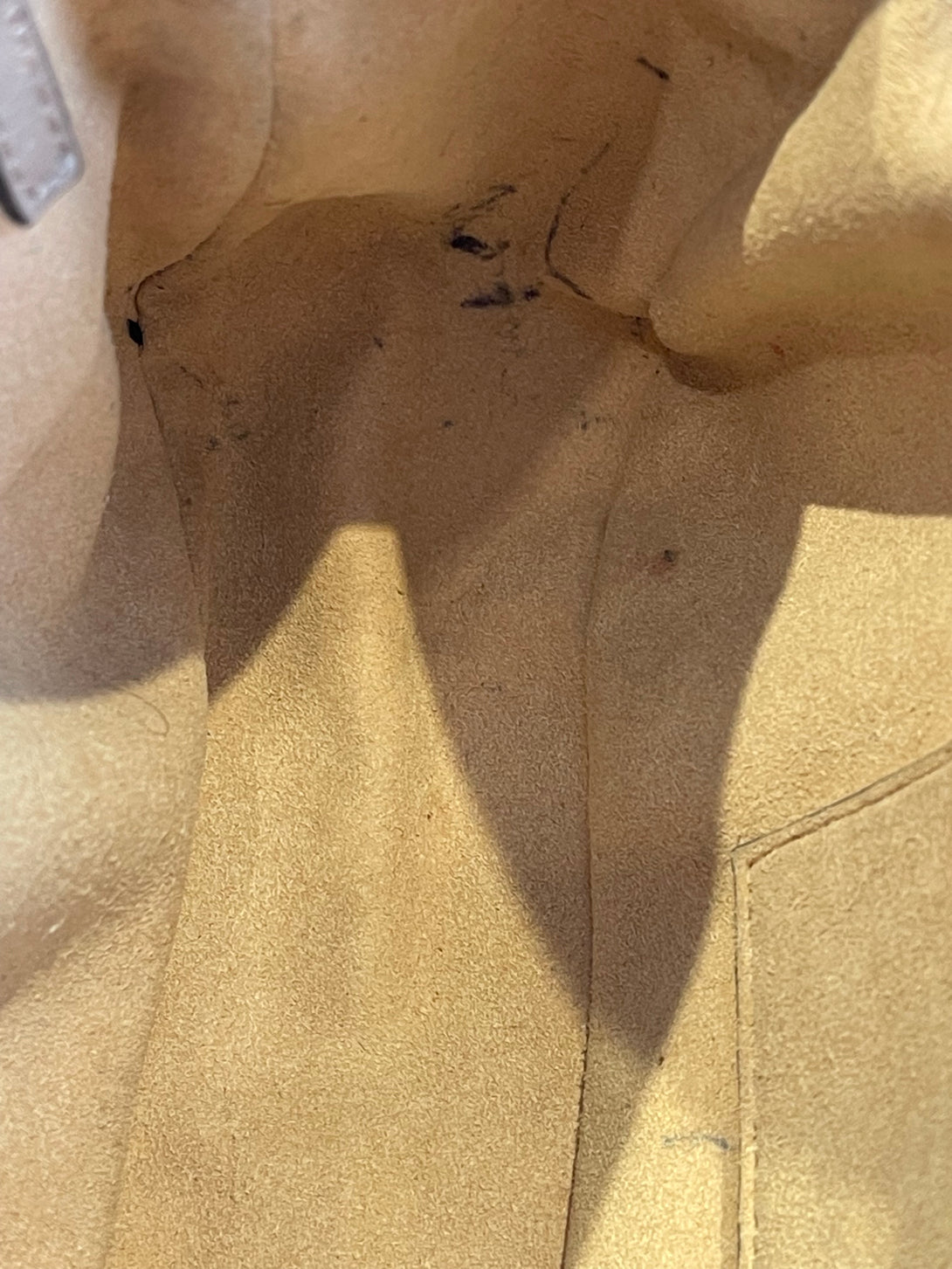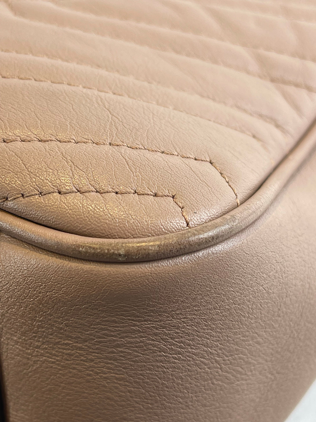 Good: Items show more prominent wear such as noticeable discoloration, stains and snags to fabric. May have worn corners and handles, tarnishing to hardware and creasing to leather. Pen or make up marks may be visible in the interior of the bag.