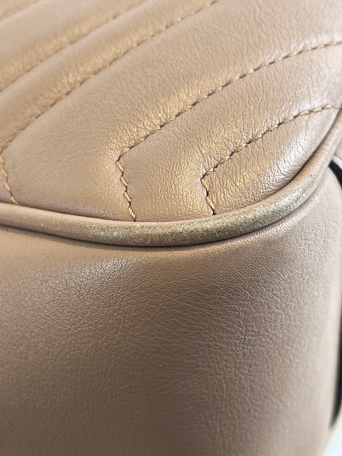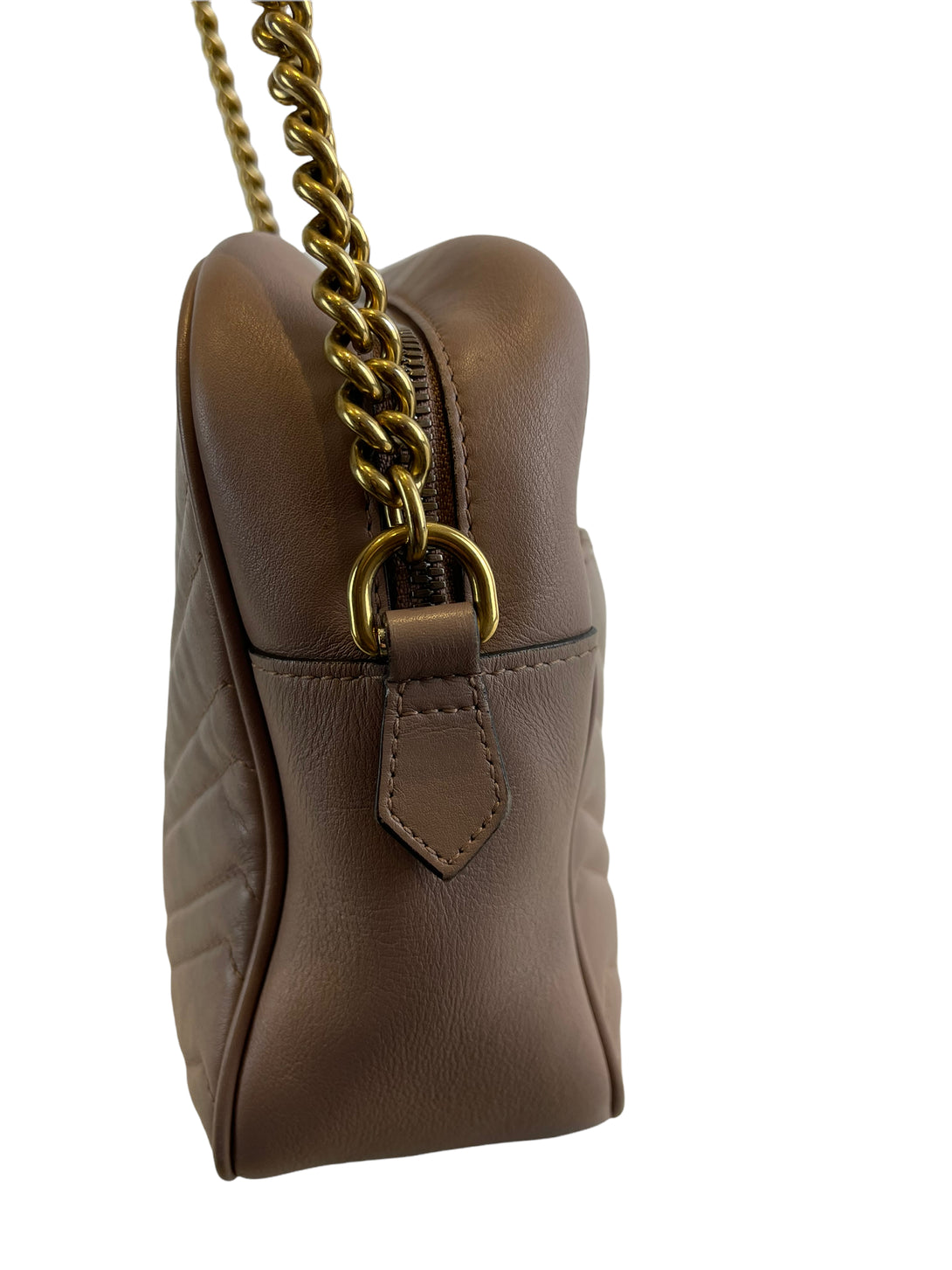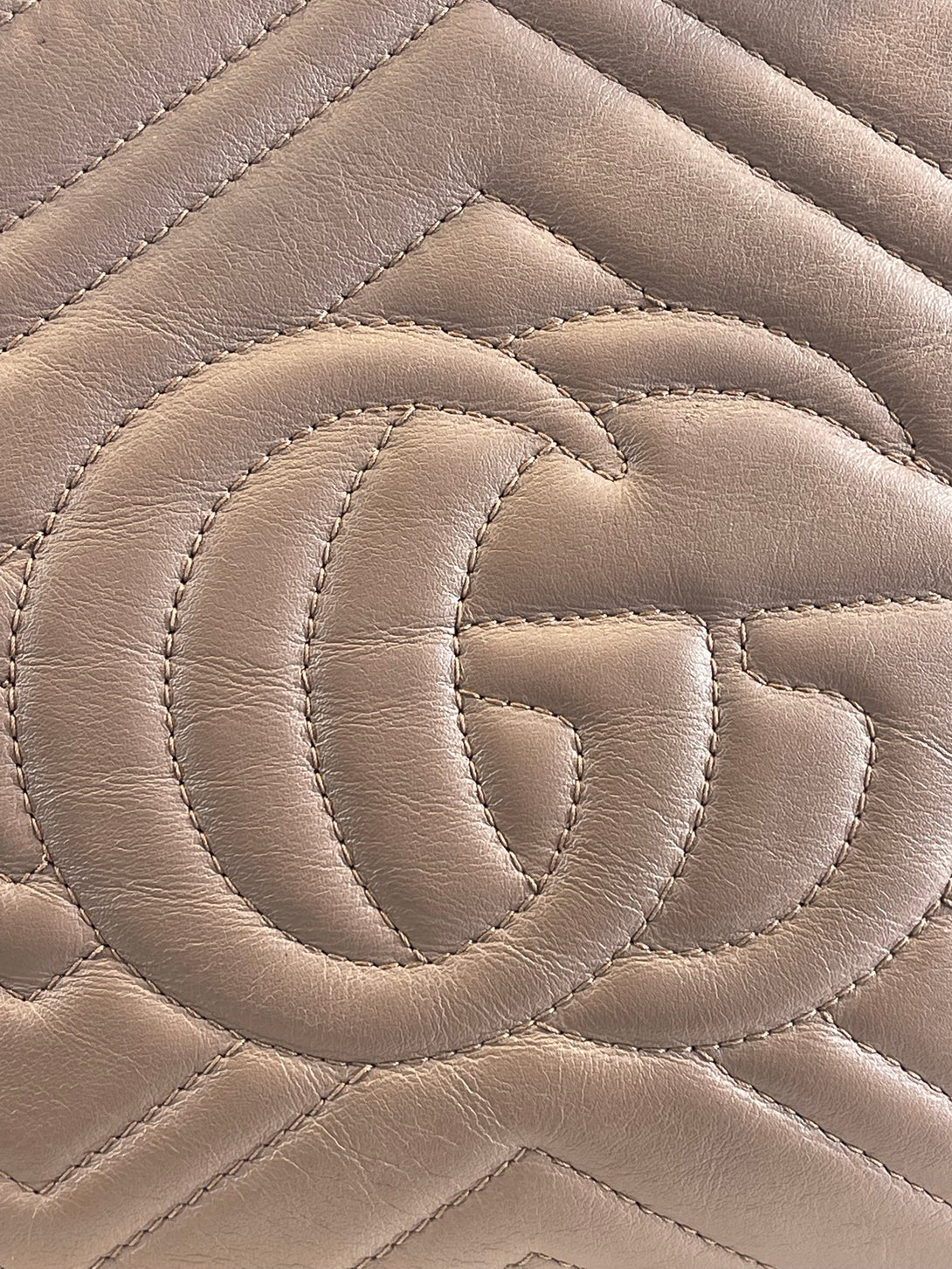Gucci Taupe Leather “GG Marmont” Crossbody