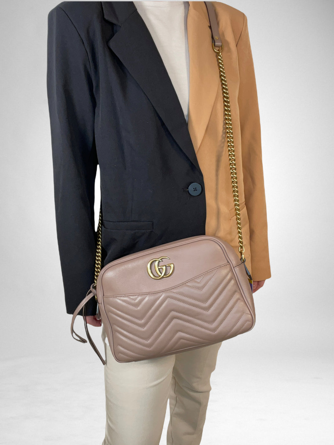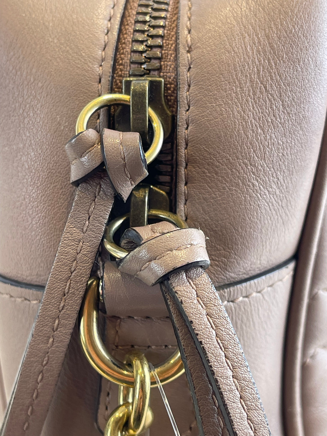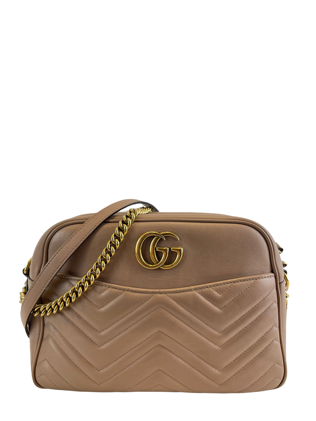 Gucci Taupe Leather “GG Marmont” Crossbody