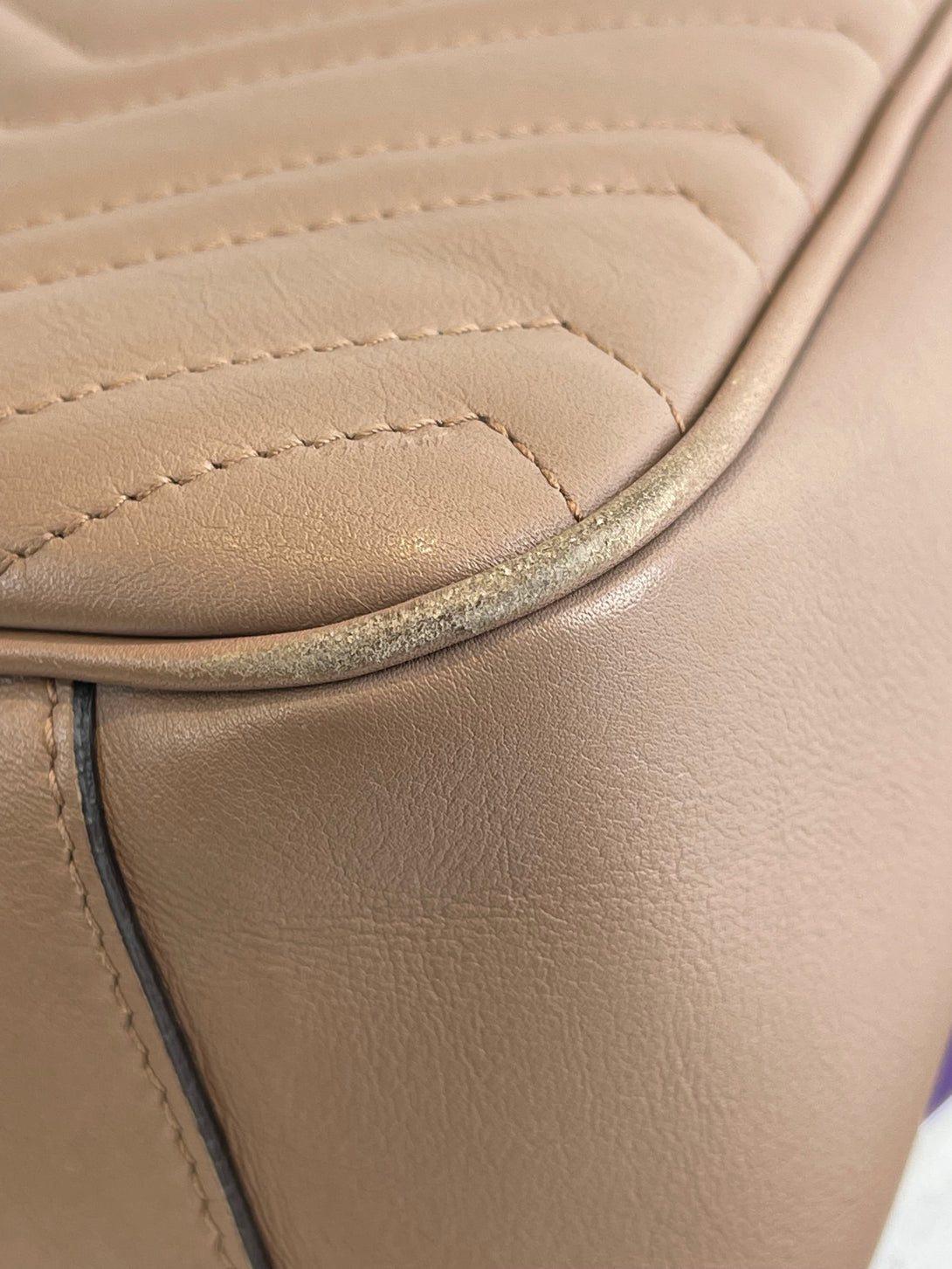 Fair: Very prominent wear, may have holes on corners, severe scuffs, piping of bag showing and pen marks to exterior. Interior may have pen or make up marks.