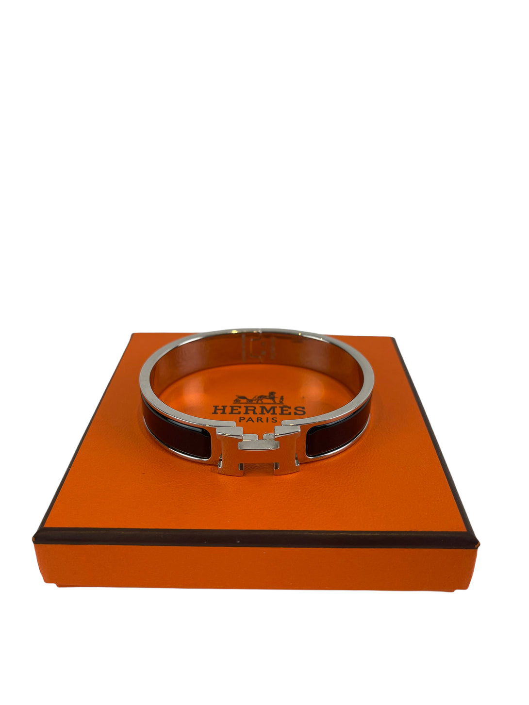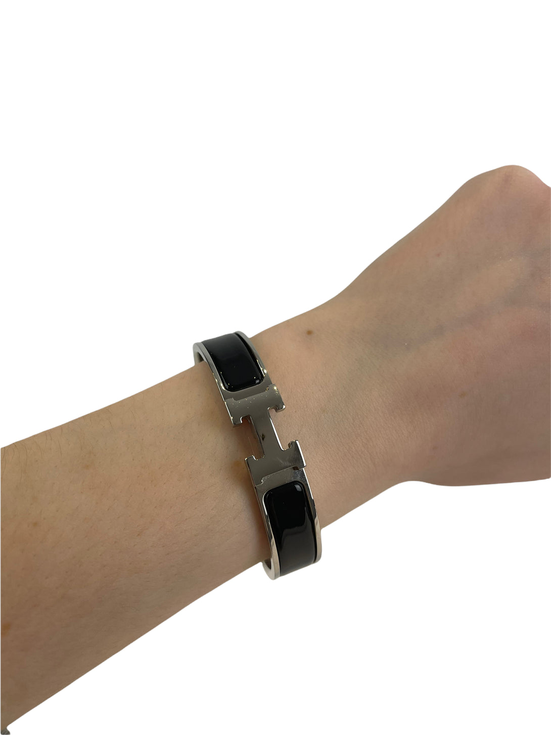 Hermès Black/Silver ‘H’ Bangle Braclet
