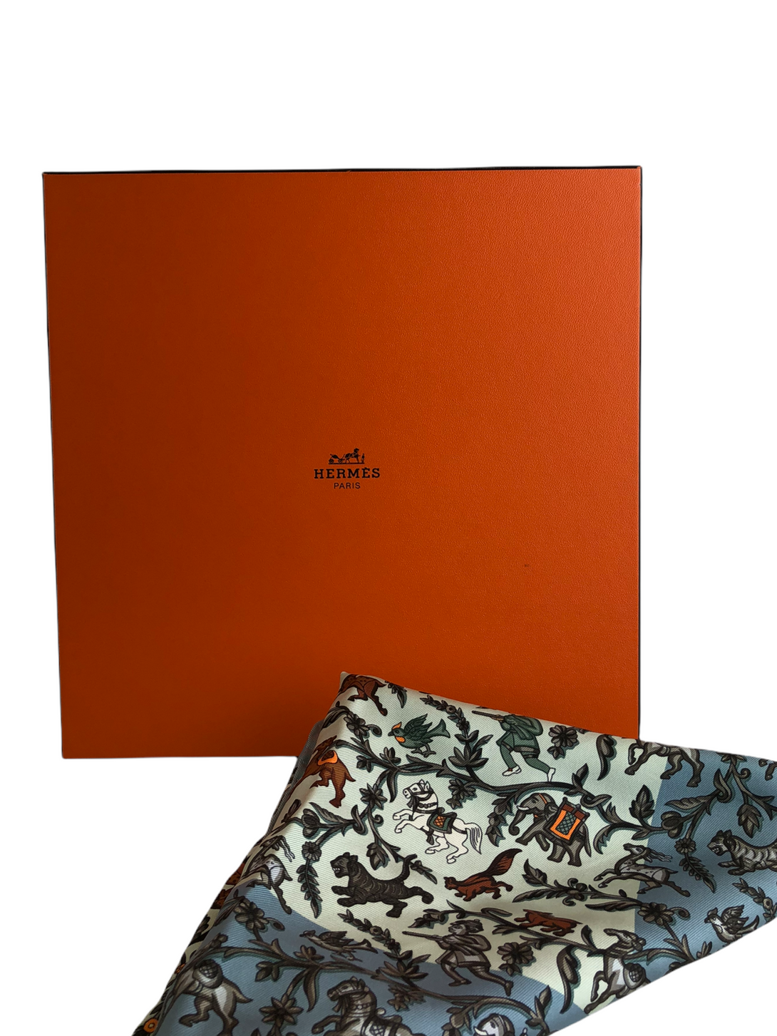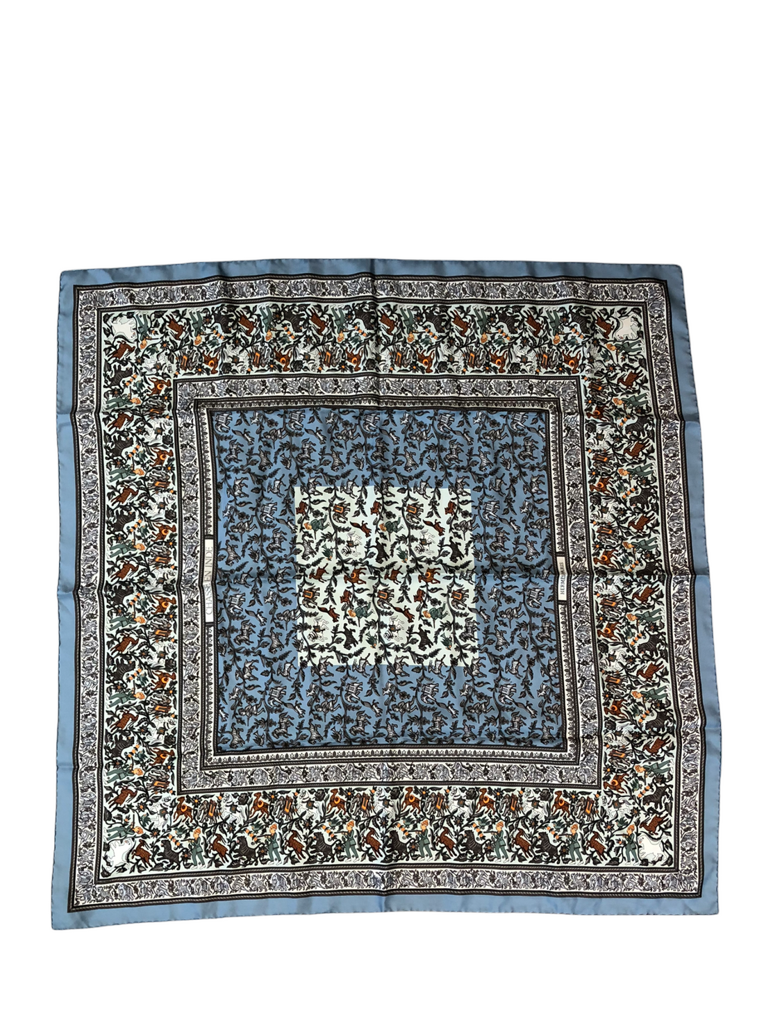 Hermes Blue Silk Print "Chasse en Inde" Scarf