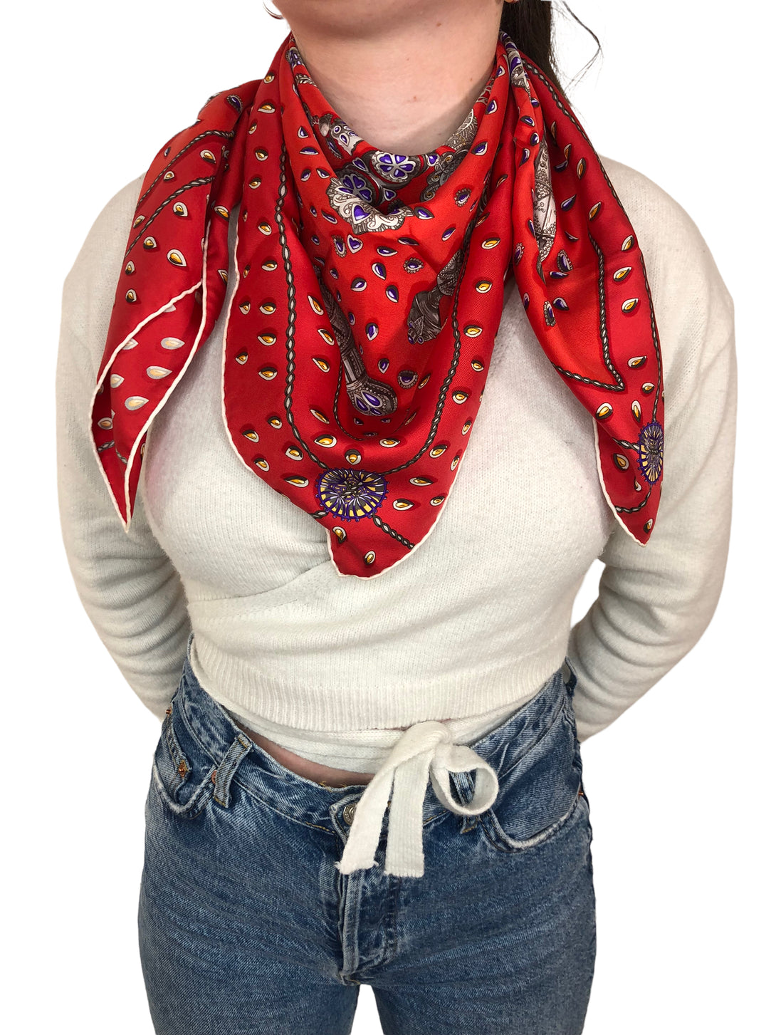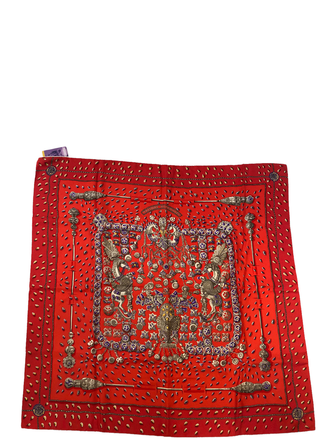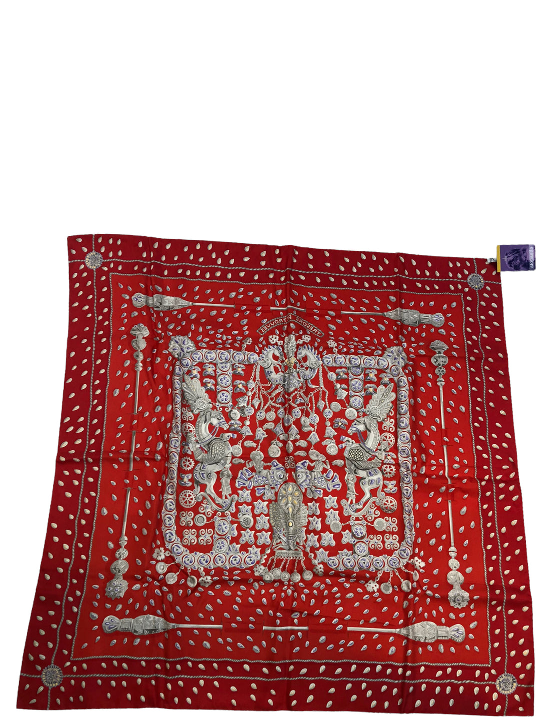 Hermès Red "Tresors Retrouves" Silk Scarf