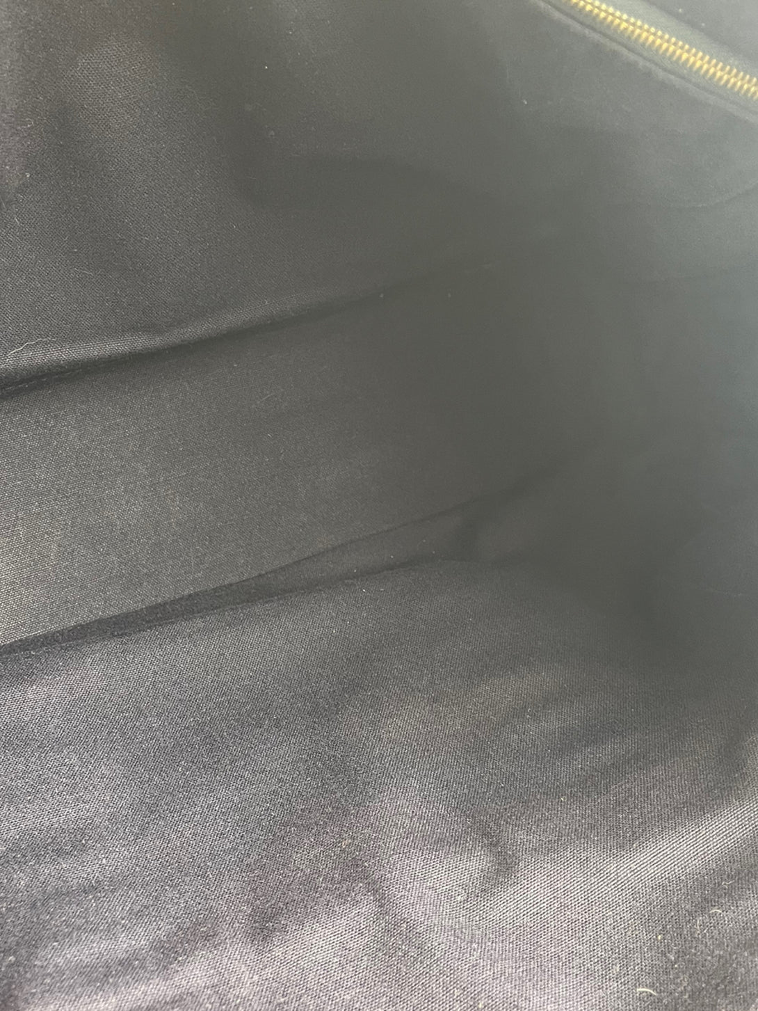 Good: Items show more prominent wear such as noticeable discoloration, stains and snags to fabric. May have worn corners and handles, tarnishing to hardware and creasing to leather. Pen or make up marks may be visible in the interior of the bag.