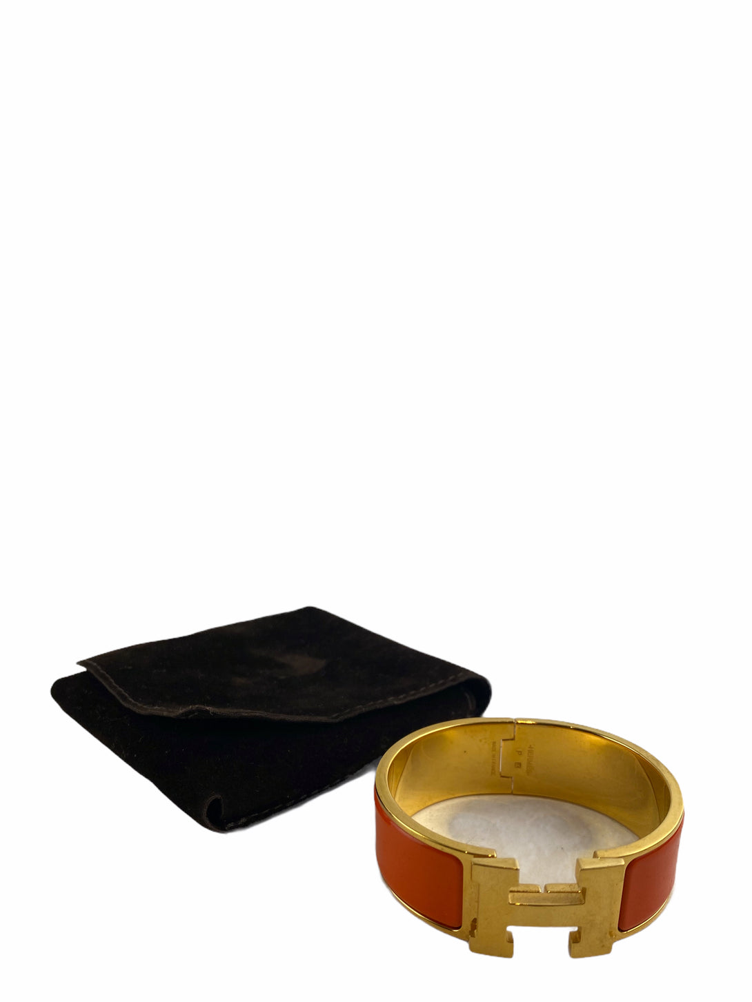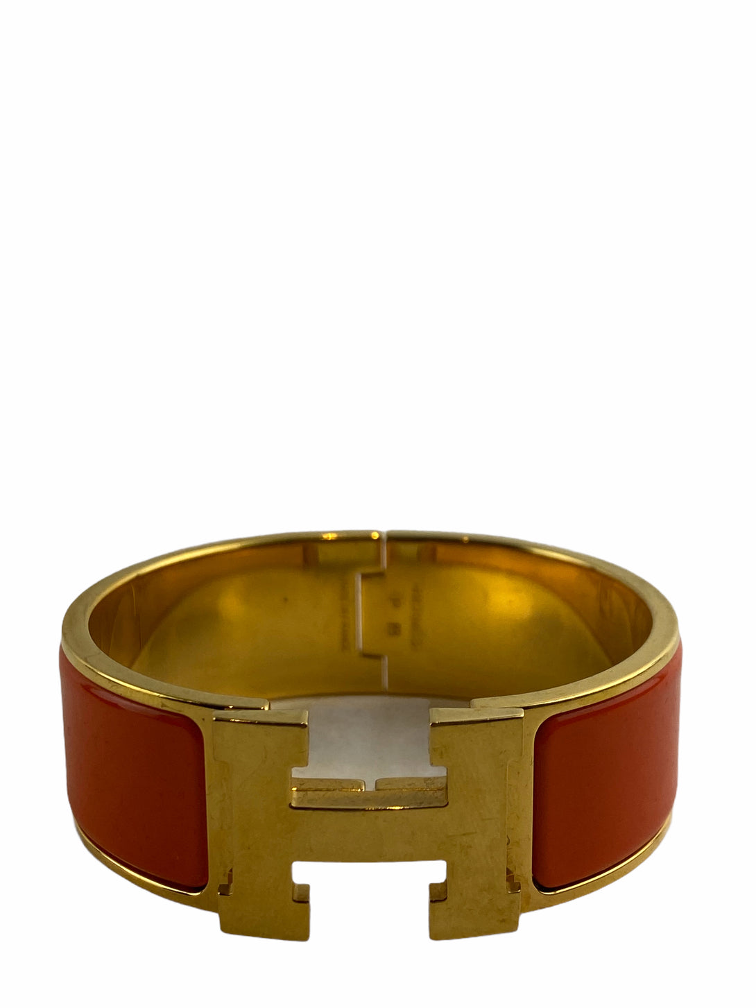Hermes Orange Enamel & Gold "H" Cuff