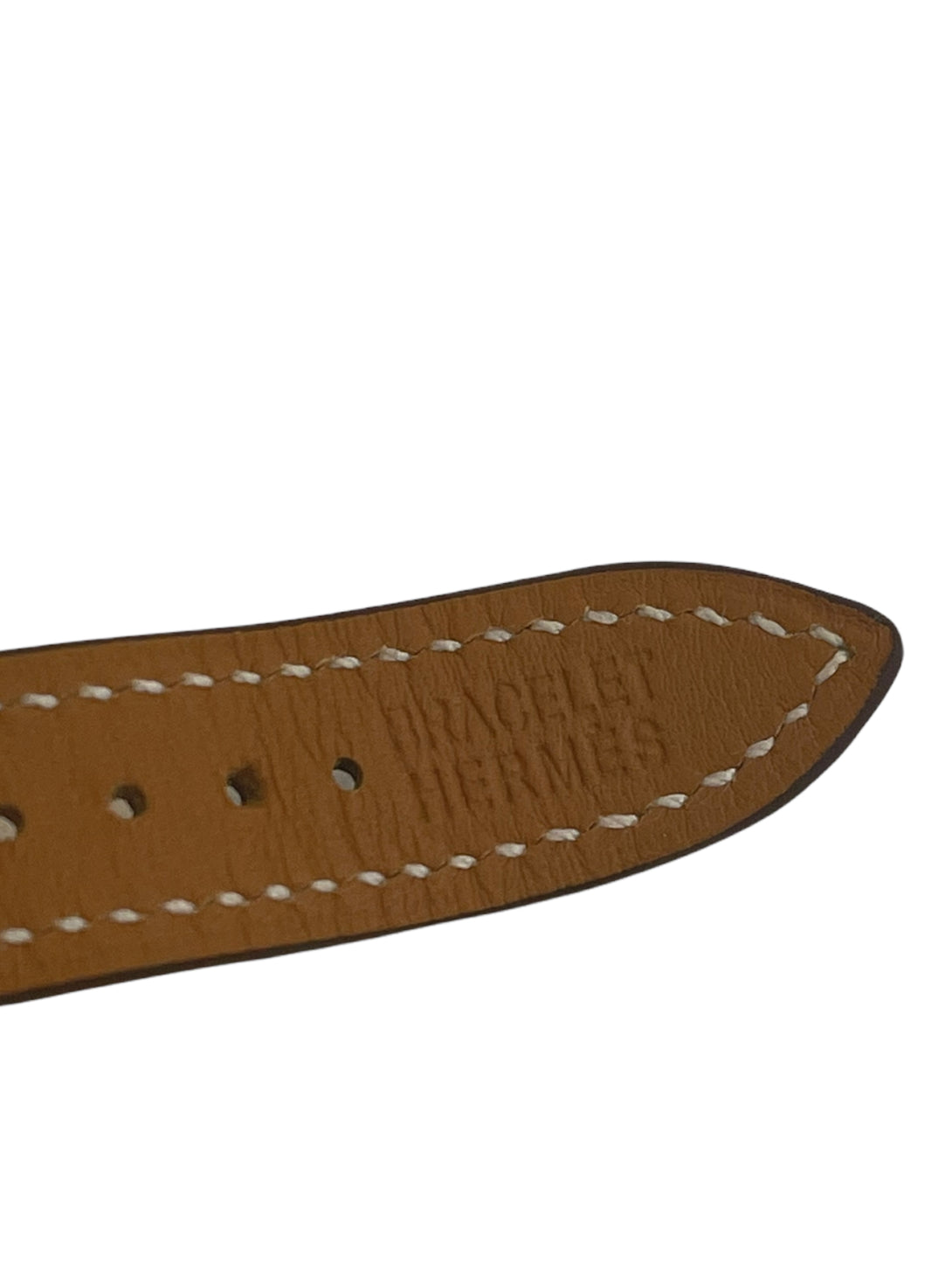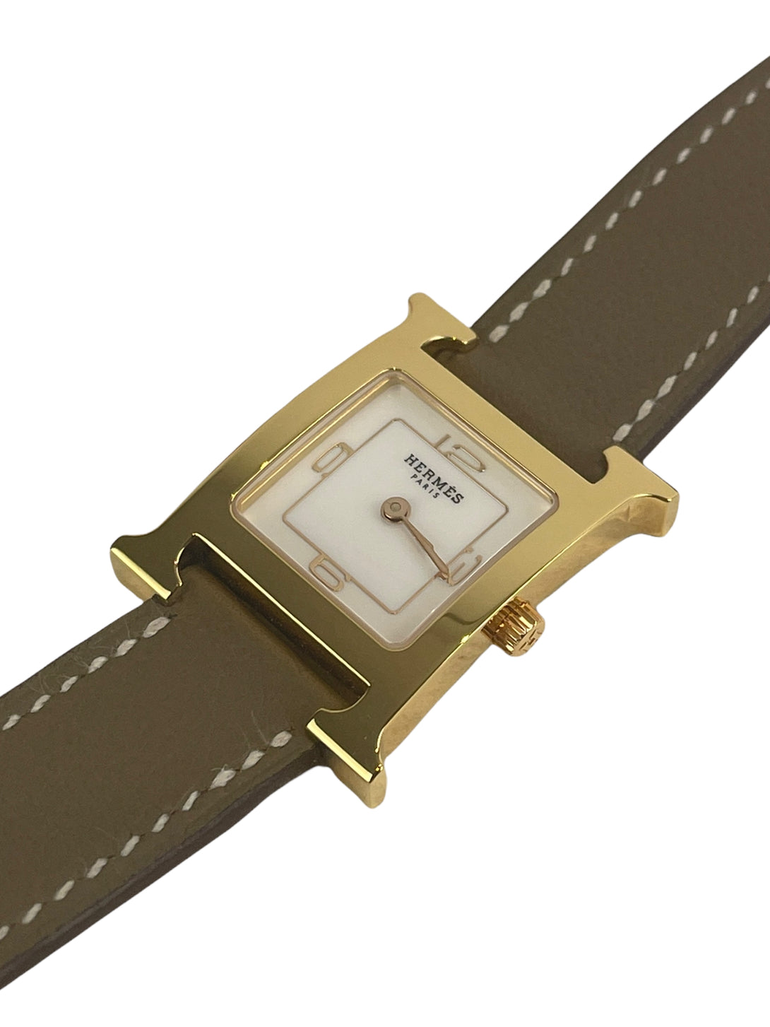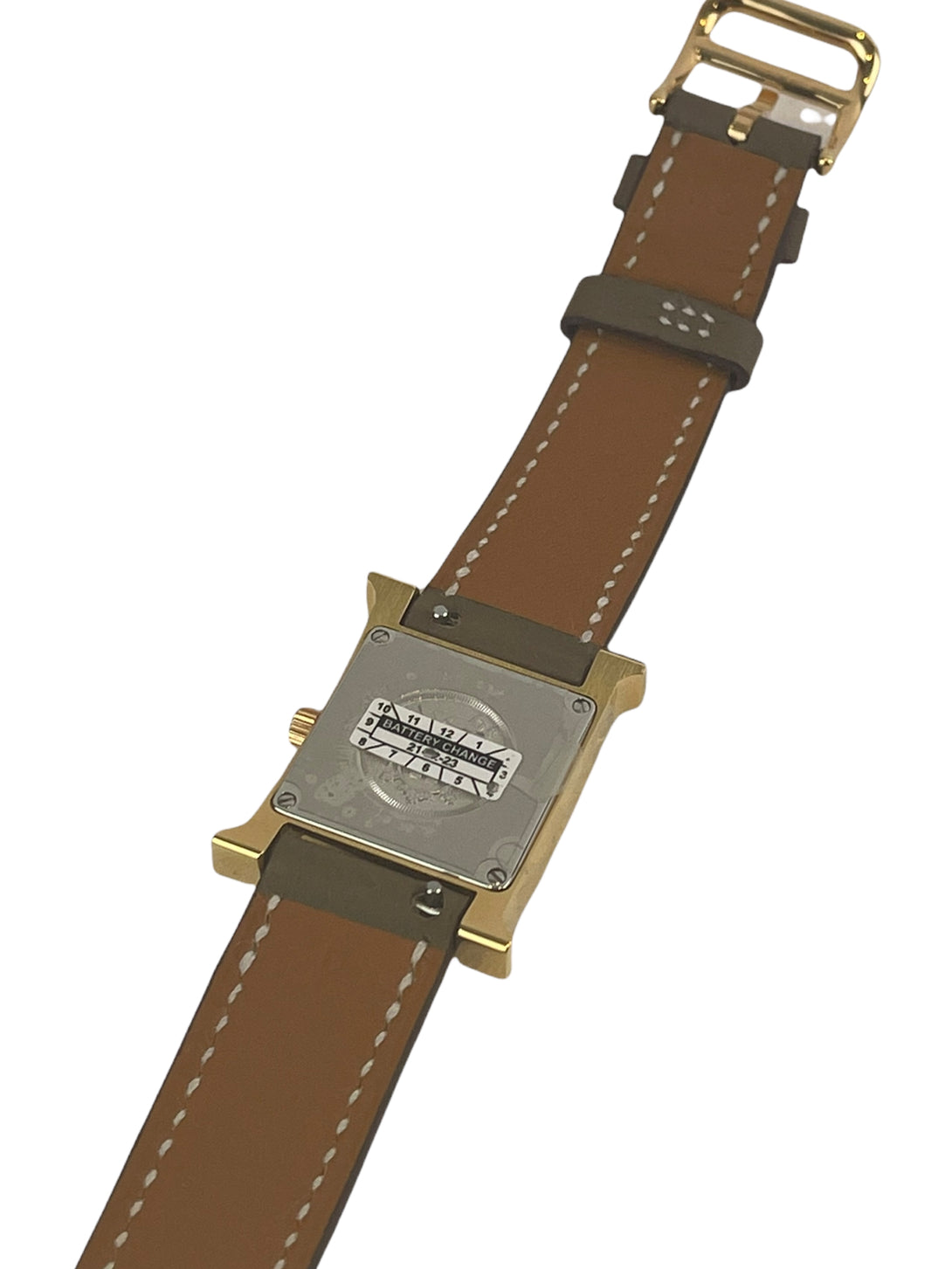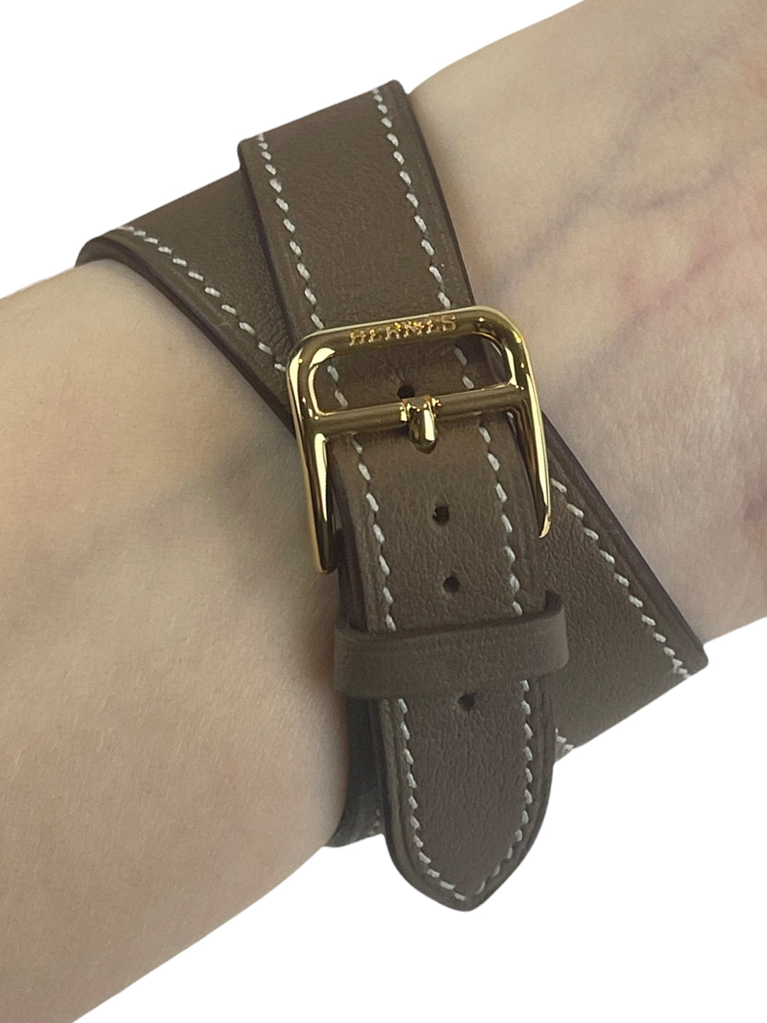 Hermes Etoupe Leather ‘Heure H’ Double Wrap Watch
