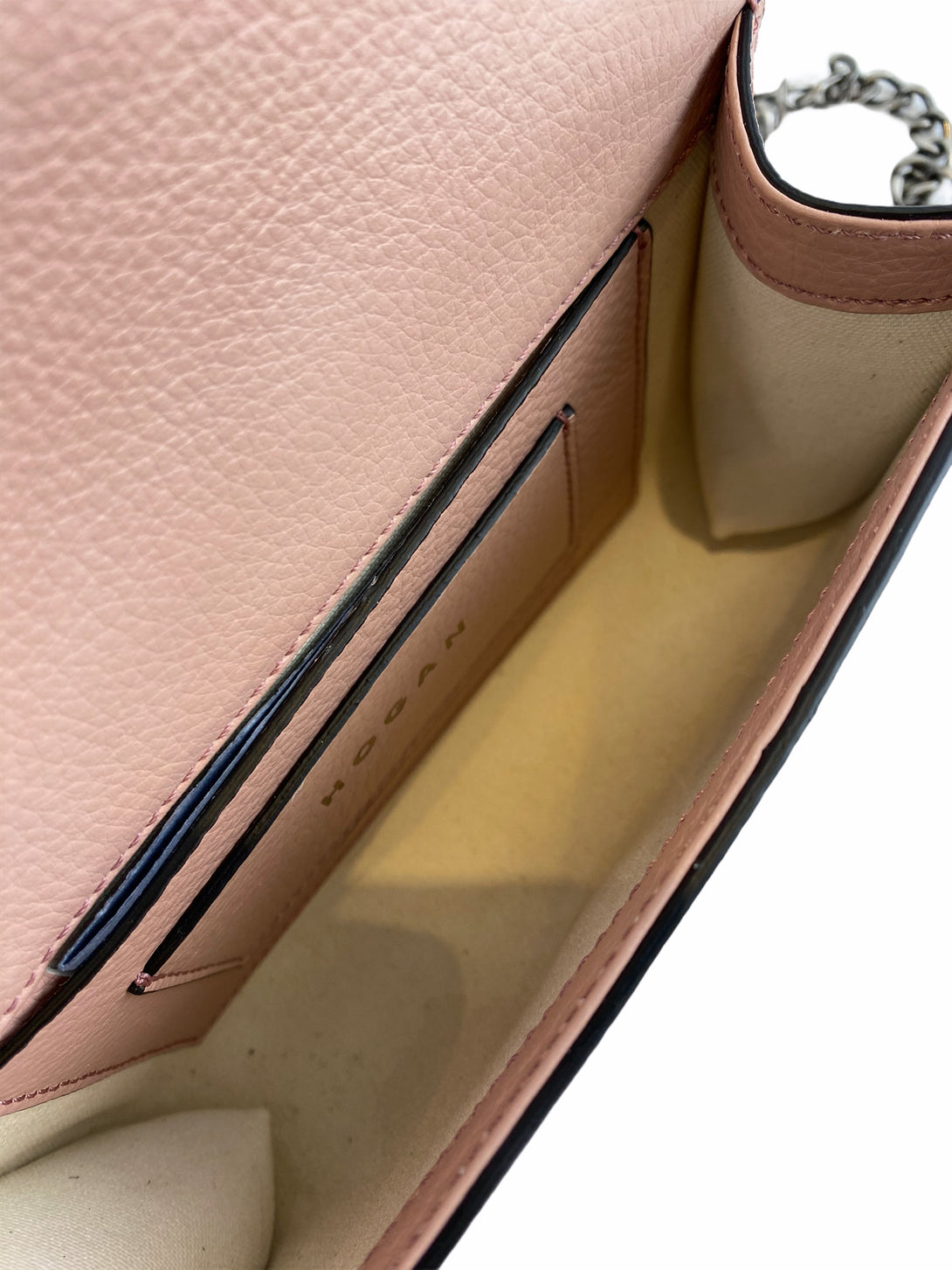 Good: Items show more prominent wear such as noticeable discoloration, stains and snags to fabric. May have worn corners and handles, tarnishing to hardware and creasing to leather. Pen or make up marks may be visible in the interior of the bag.