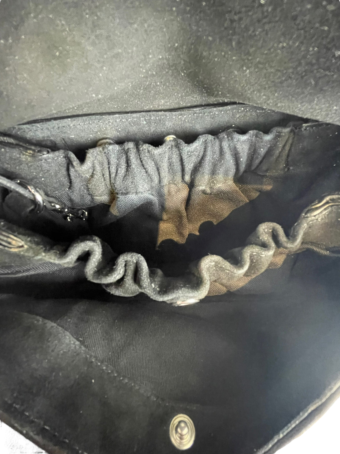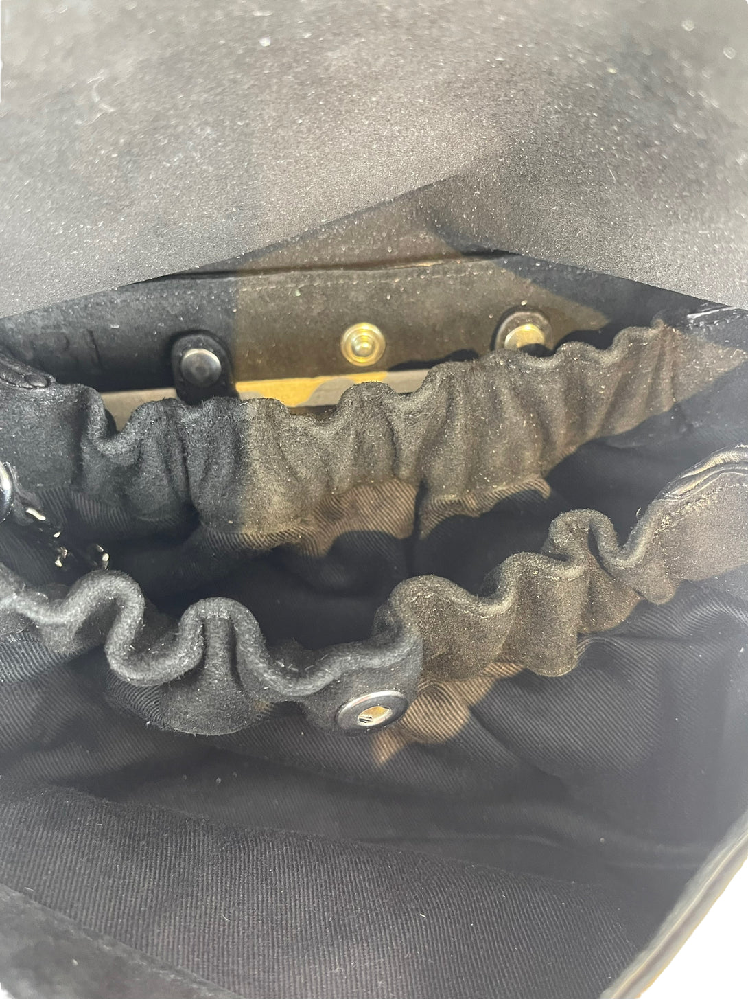 Good: Items show more prominent wear such as noticeable discoloration, stains and snags to fabric. May have worn corners and handles, tarnishing to hardware and creasing to leather. Pen or make up marks may be visible in the interior of the bag.