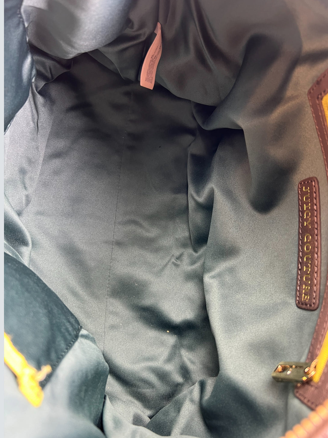 Good: Items show more prominent wear such as noticeable discoloration, stains and snags to fabric. May have worn corners and handles, tarnishing to hardware and creasing to leather. Pen or make up marks may be visible in the interior of the bag.
