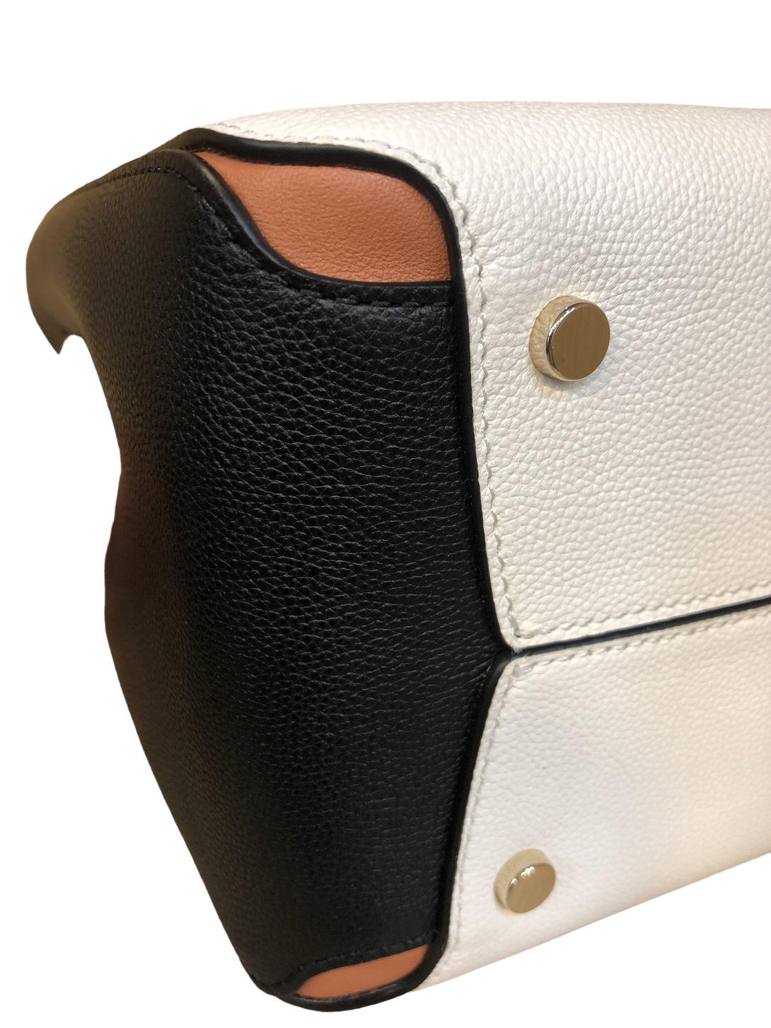 Good: Items show more prominent wear such as noticeable discoloration, stains and snags to fabric. May have worn corners and handles, tarnishing to hardware and creasing to leather. Pen or make up marks may be visible in the interior of the bag.