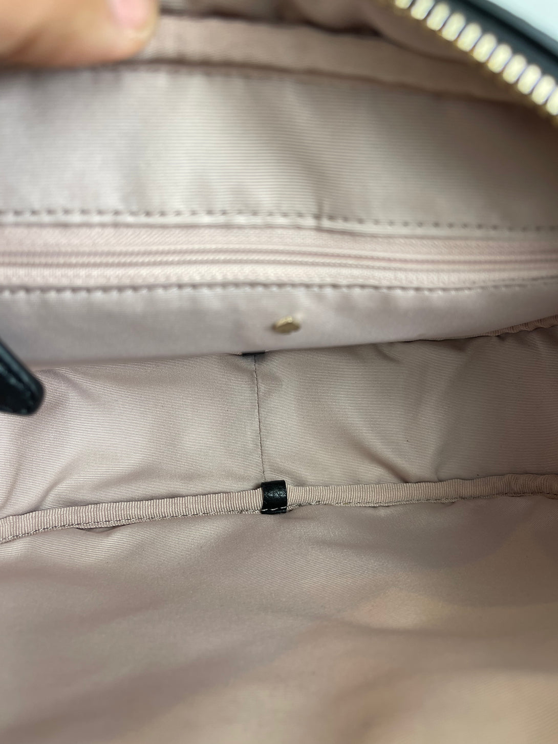 Good: Items show more prominent wear such as noticeable discoloration, stains and snags to fabric. May have worn corners and handles, tarnishing to hardware and creasing to leather. Pen or make up marks may be visible in the interior of the bag.