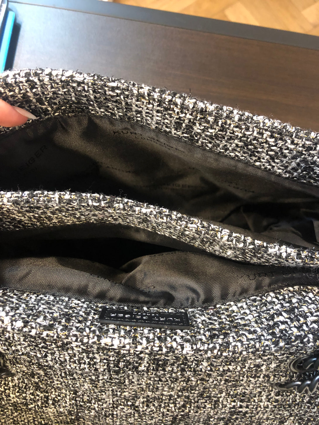 Kurt Geiger Monochrome Tweed Kensington Shoulder Bag
