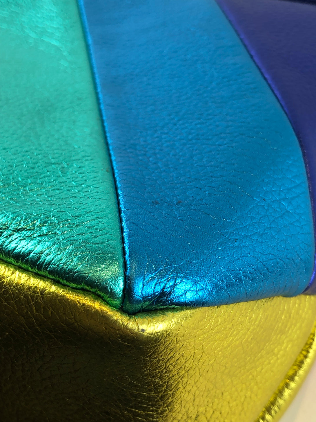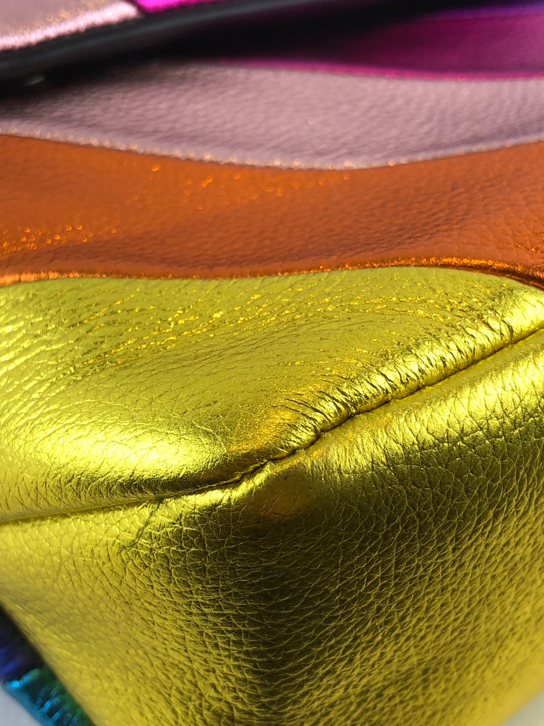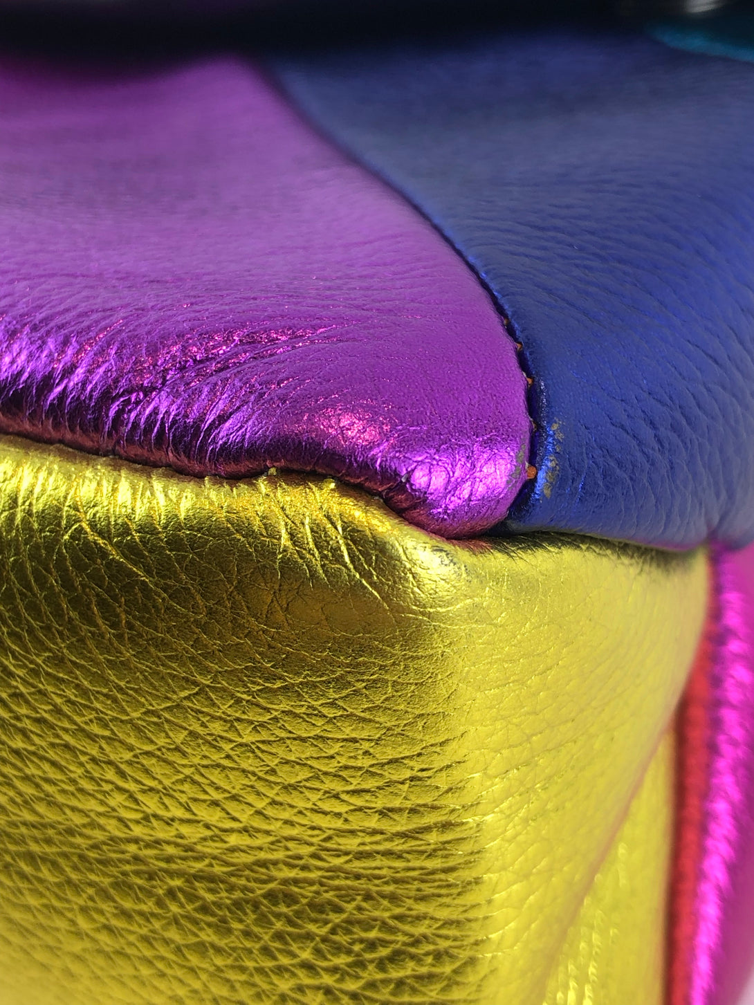 Fair: Very prominent wear, may have holes on corners, severe scuffs, piping of bag showing and pen marks to exterior. Interior may have pen or make up marks.