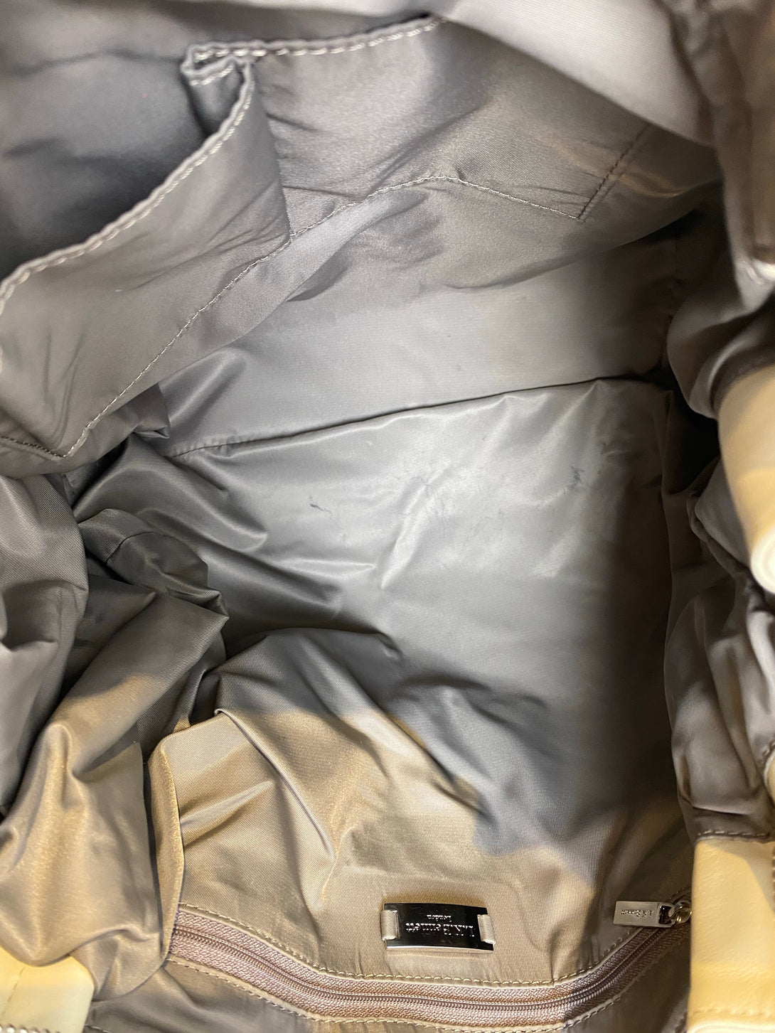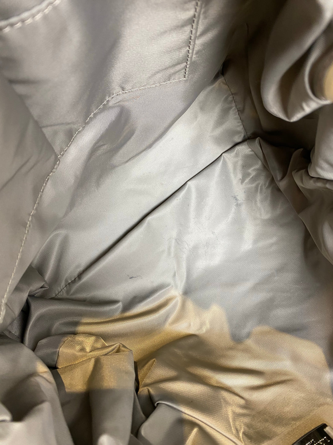 Good: Items show more prominent wear such as noticeable discoloration, stains and snags to fabric. May have worn corners and handles, tarnishing to hardware and creasing to leather. Pen or make up marks may be visible in the interior of the bag.