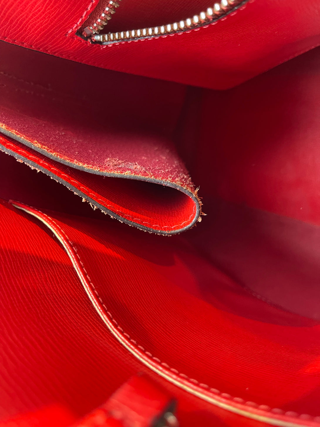 Fair: Very prominent wear, may have holes on corners, severe scuffs, piping of bag showing and pen marks to exterior. Interior may have pen or make up marks.