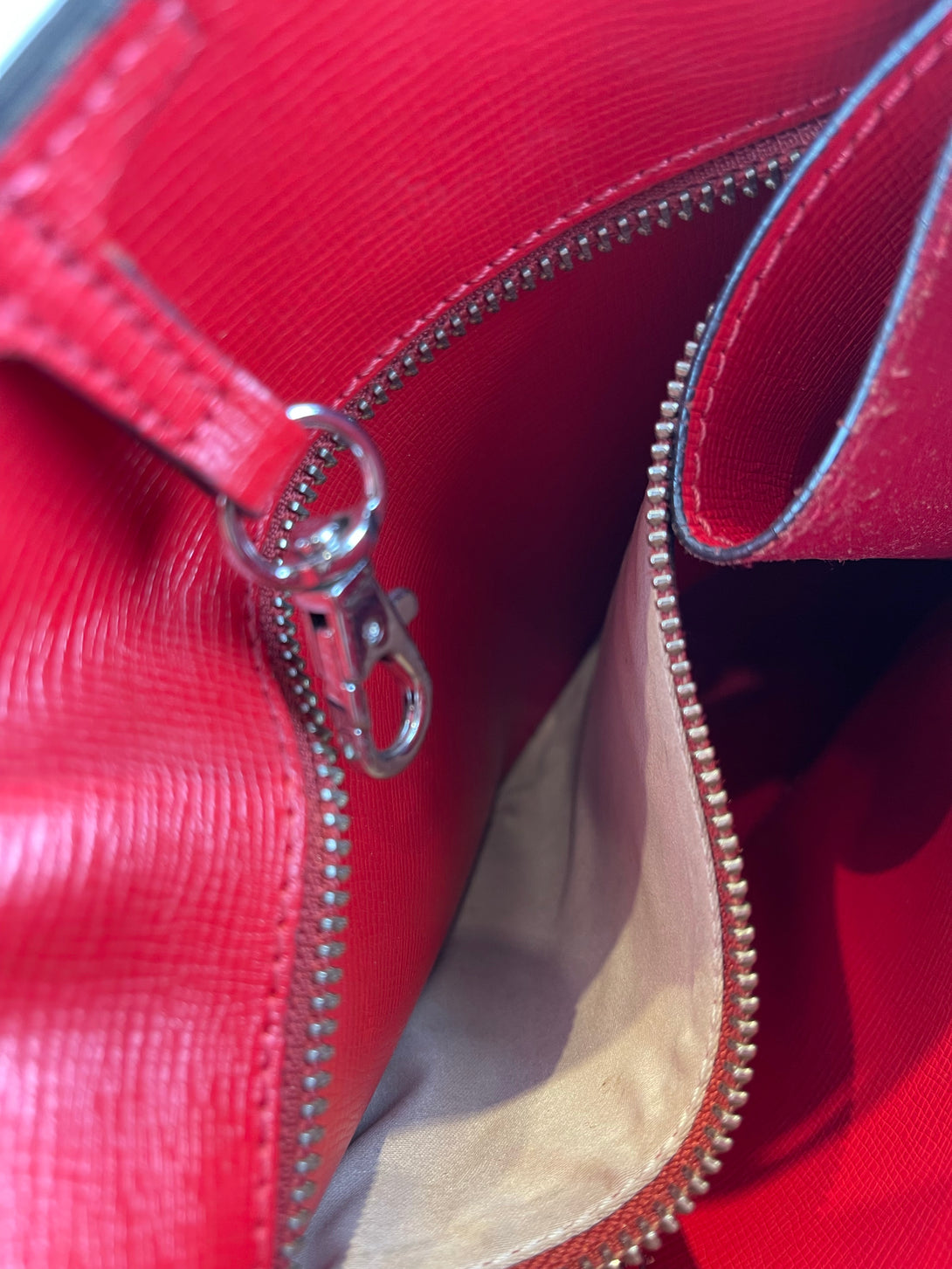 Good: Items show more prominent wear such as noticeable discoloration, stains and snags to fabric. May have worn corners and handles, tarnishing to hardware and creasing to leather. Pen or make up marks may be visible in the interior of the bag.