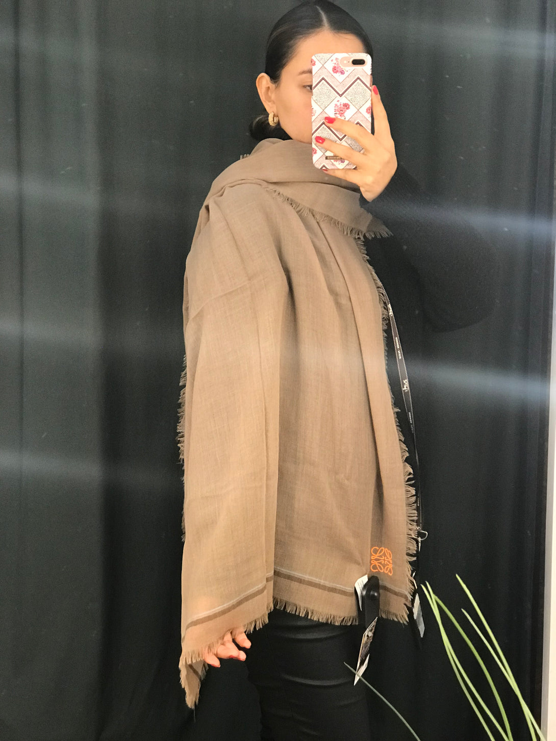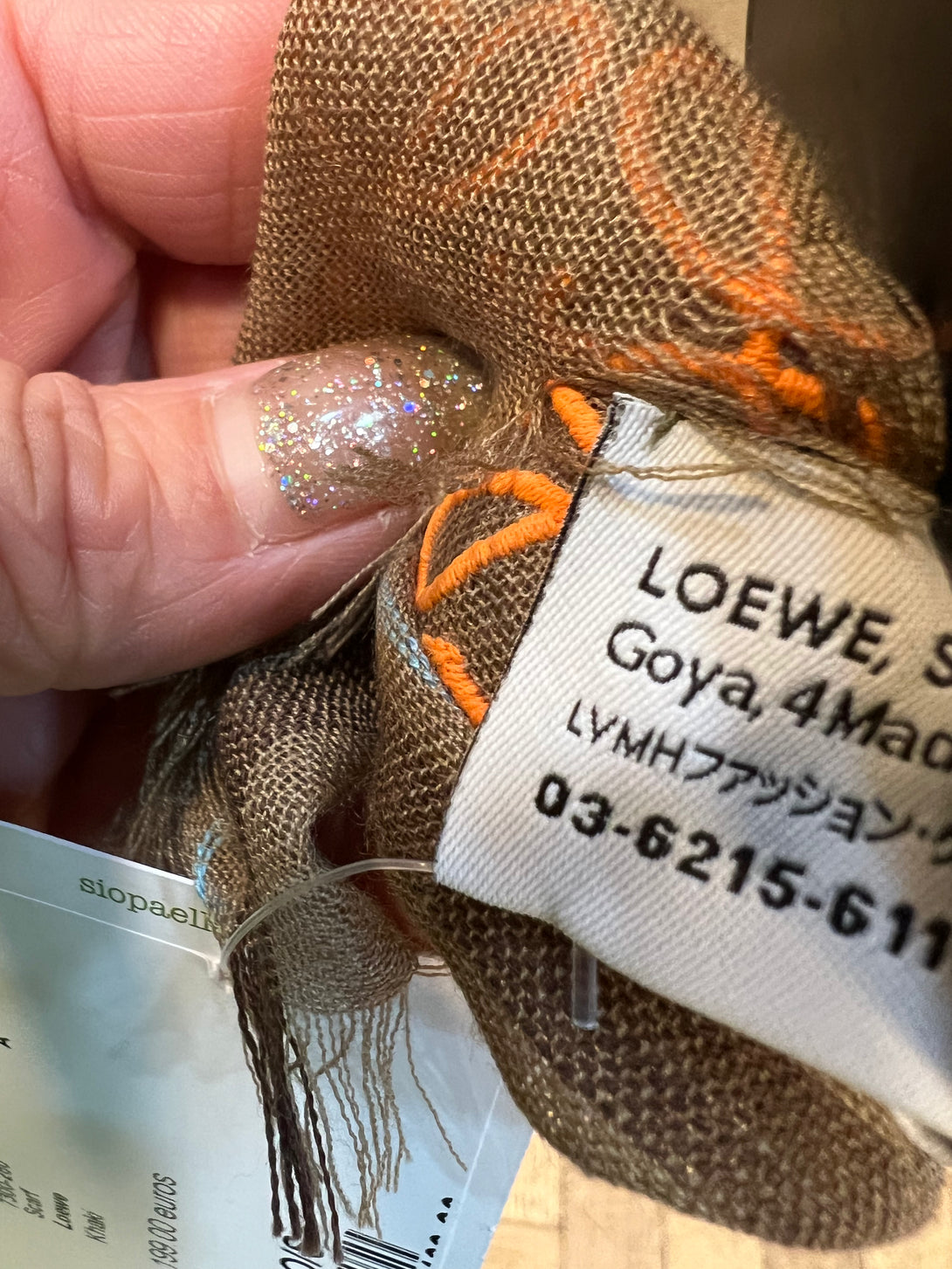 Loewe Khaki frayed edge scarf- As Seen on Instagram