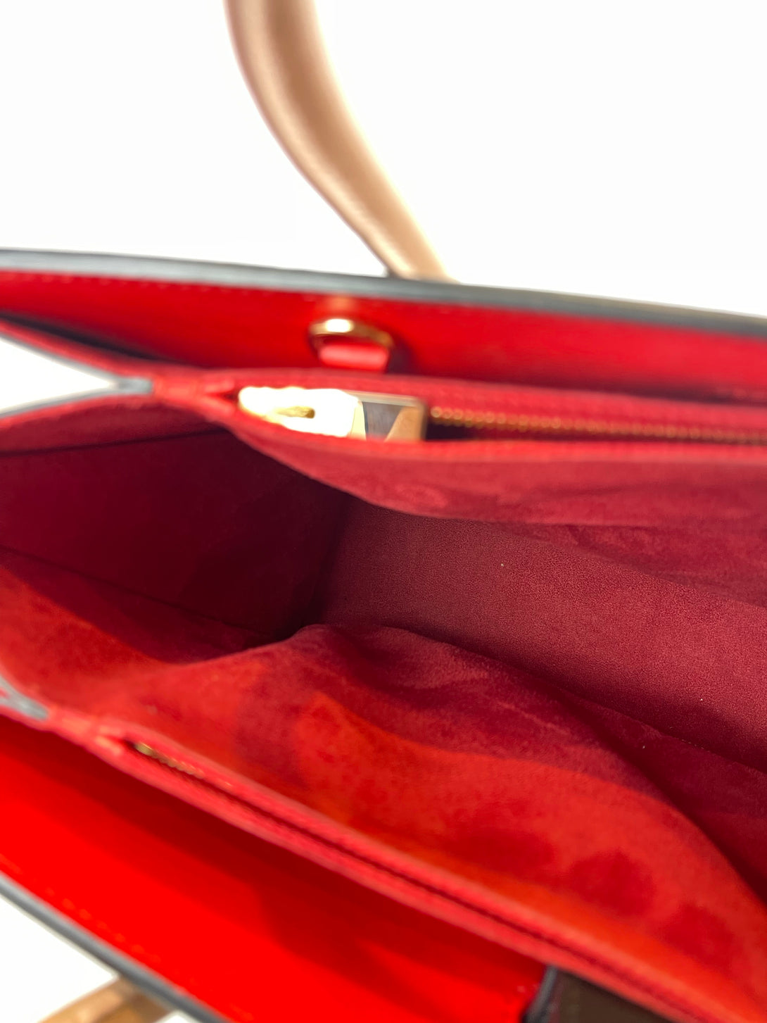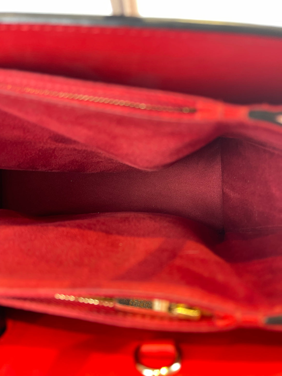 Good: Items show more prominent wear such as noticeable discoloration, stains and snags to fabric. May have worn corners and handles, tarnishing to hardware and creasing to leather. Pen or make up marks may be visible in the interior of the bag.