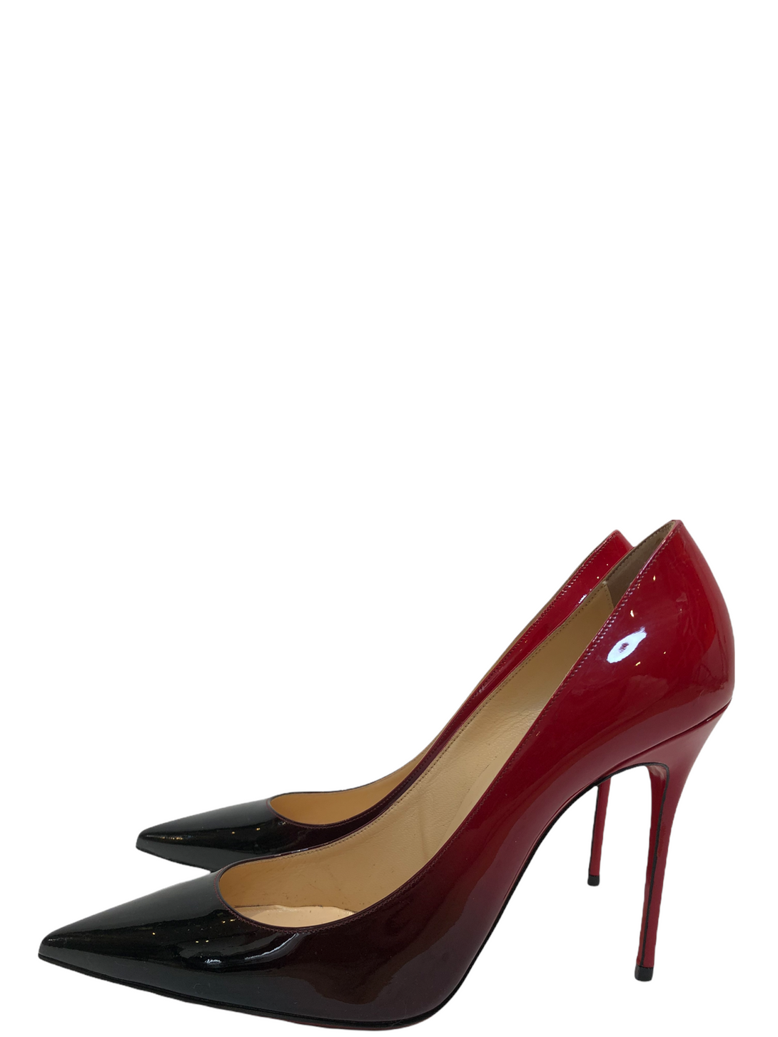 Christian Louboutin Black & Red Ombré Patent Stiletto Heel - UK 6.5